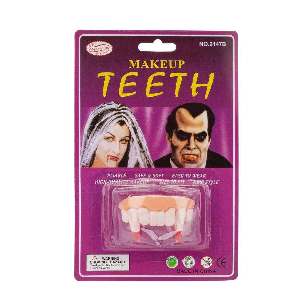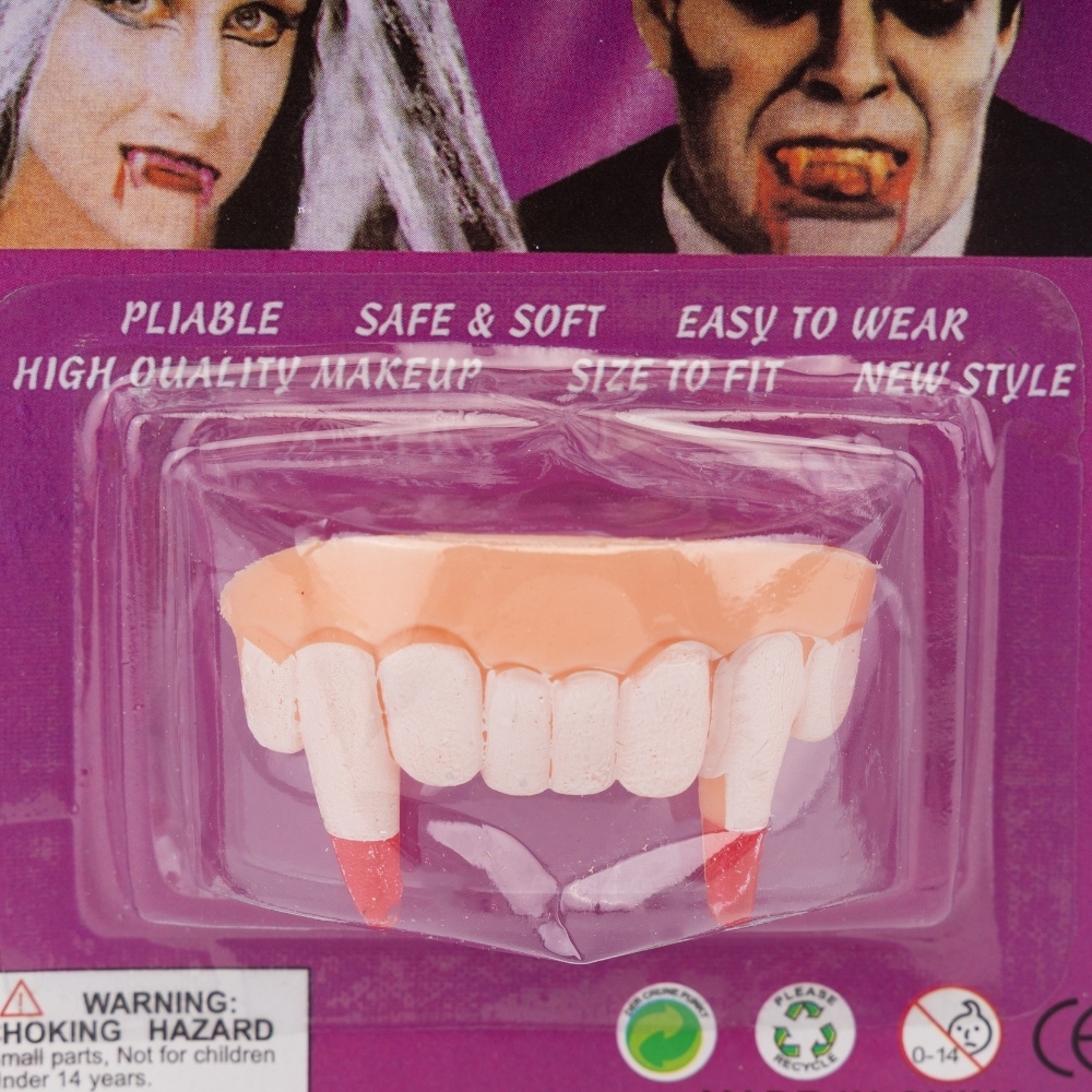 Ширина - 3,5 см, довжина - 5 см. Накладні вампірські зуби, які стануть ідеальним доповненням до будь-якого костюма вампіра чи монстра. Легко одягаються, м’які та безпечні у використанні, підходять як для дорослих, так і для дітей. Створіть моторошний образ і додайте атмосферу справжнього Хелловіну!