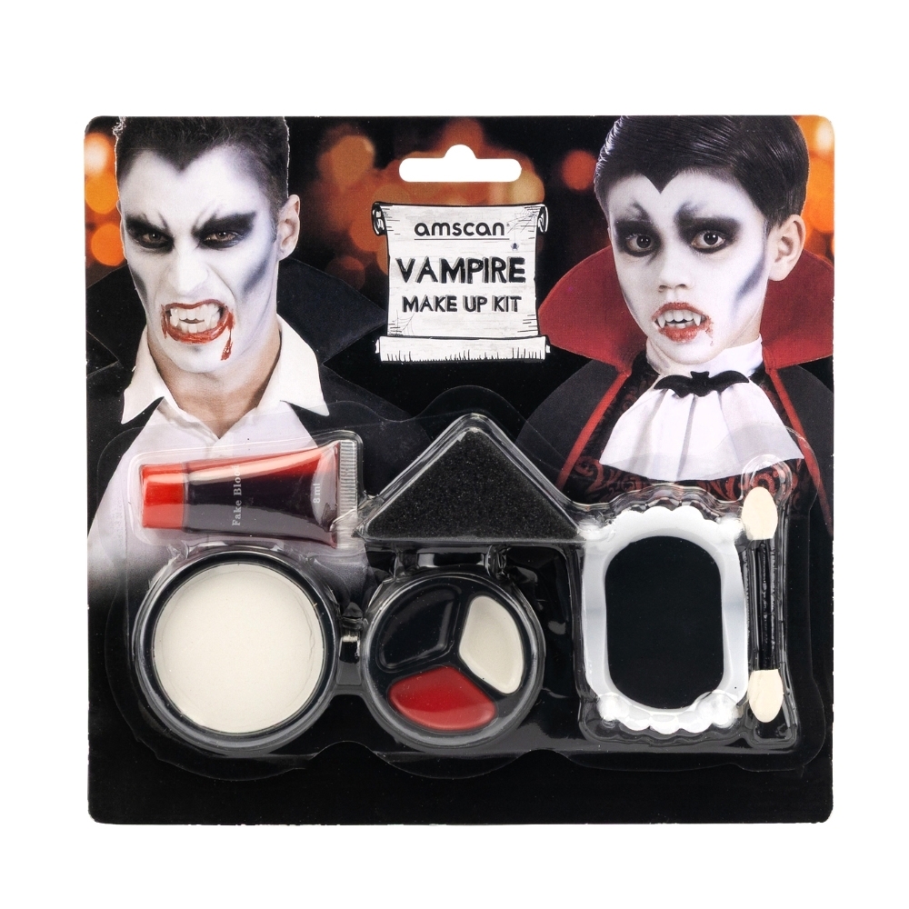 Грим на Хелловін «Вампір» — повний набір для створення моторошного та реалістичного образу вампіра. У комплекті є все необхідне: накладні зуби, фарби для обличчя у трьох кольорах, штучна кров, аплікатори та губка для зручного нанесення. Такий набір підійде для дорослих і дітей, стане ідеальним аксесуаром для костюмованих вечірок, тематичних фотосесій чи святкових виступів. Легко наноситься та змивається, дозволяючи швидко перевтілитися у справжнього кровожерливого вампіра!