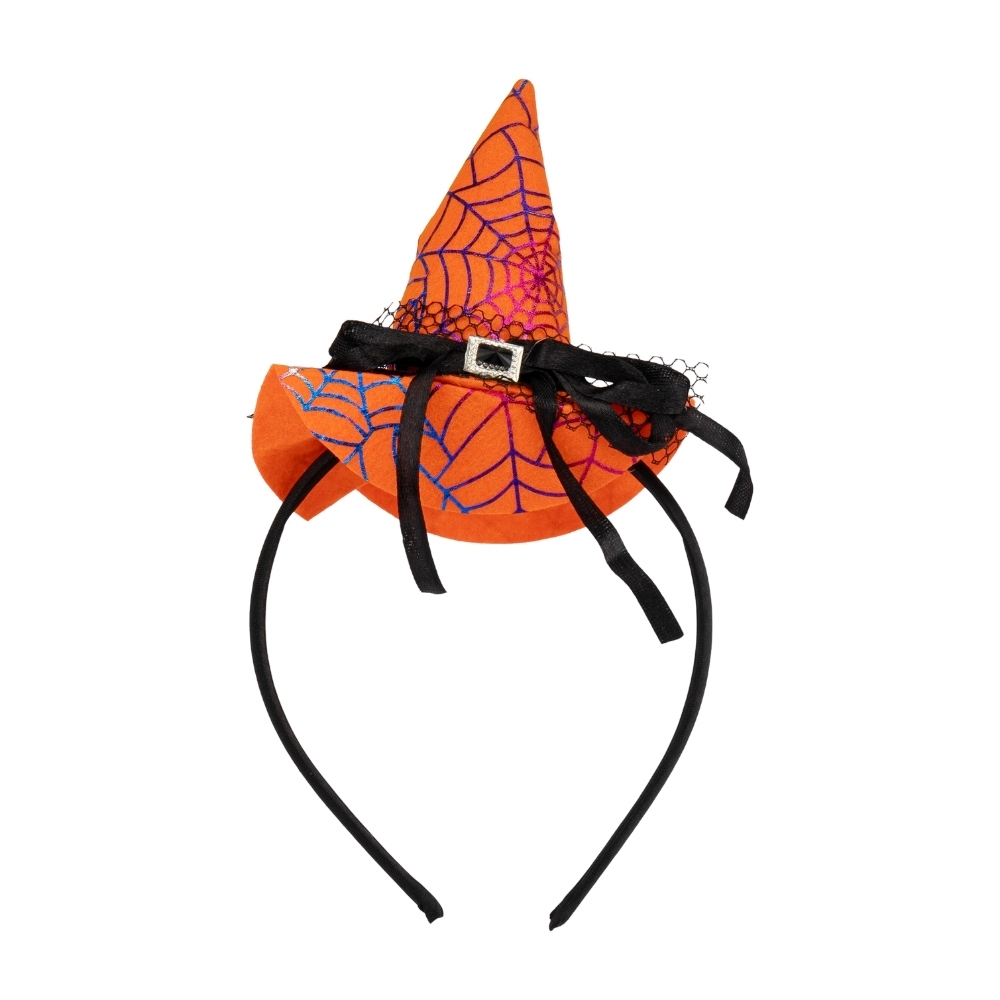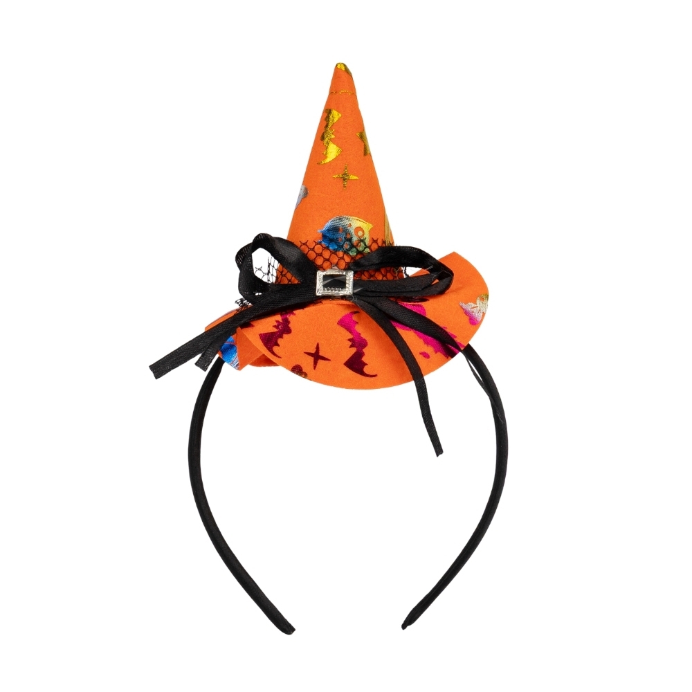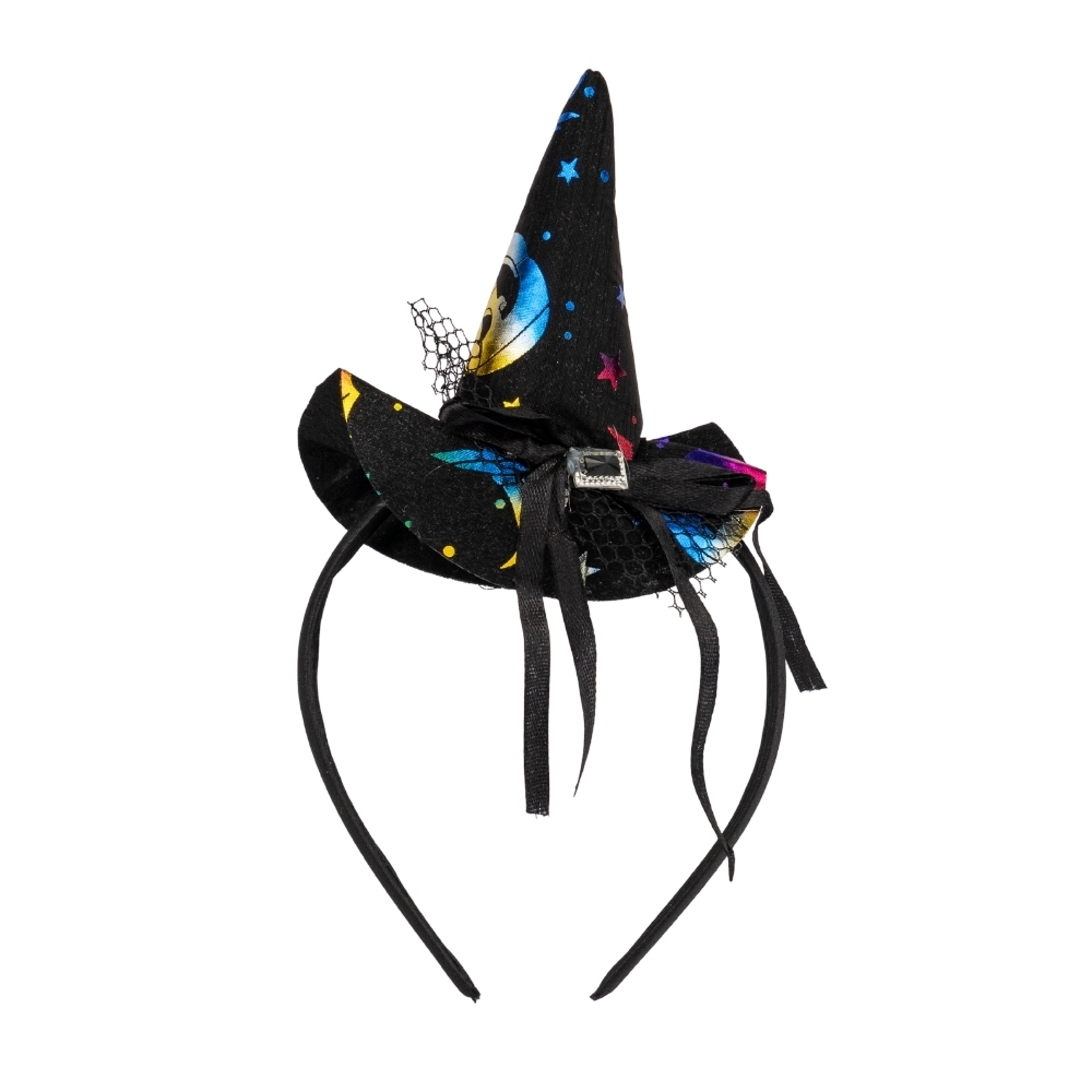 В упаковці 12 шт - 3 кольори по 4 шт. Ціна вказана за 1 шт. Висота (разом з ободком) - 22 см, діаметр - 11 см. Обідок на Хелловін – це класичний атрибут святкового костюма, який додає образу чарівності та містичності. Він виготовлений з щільної тканини та декорований пір'ям та тематичними візерунками, бантами, що додають ободку особливого шарму та загадковості. Цей аксесуар є незамінною деталлю для створення ефектного і завершеного образу відьми на будь-якій вечірці.