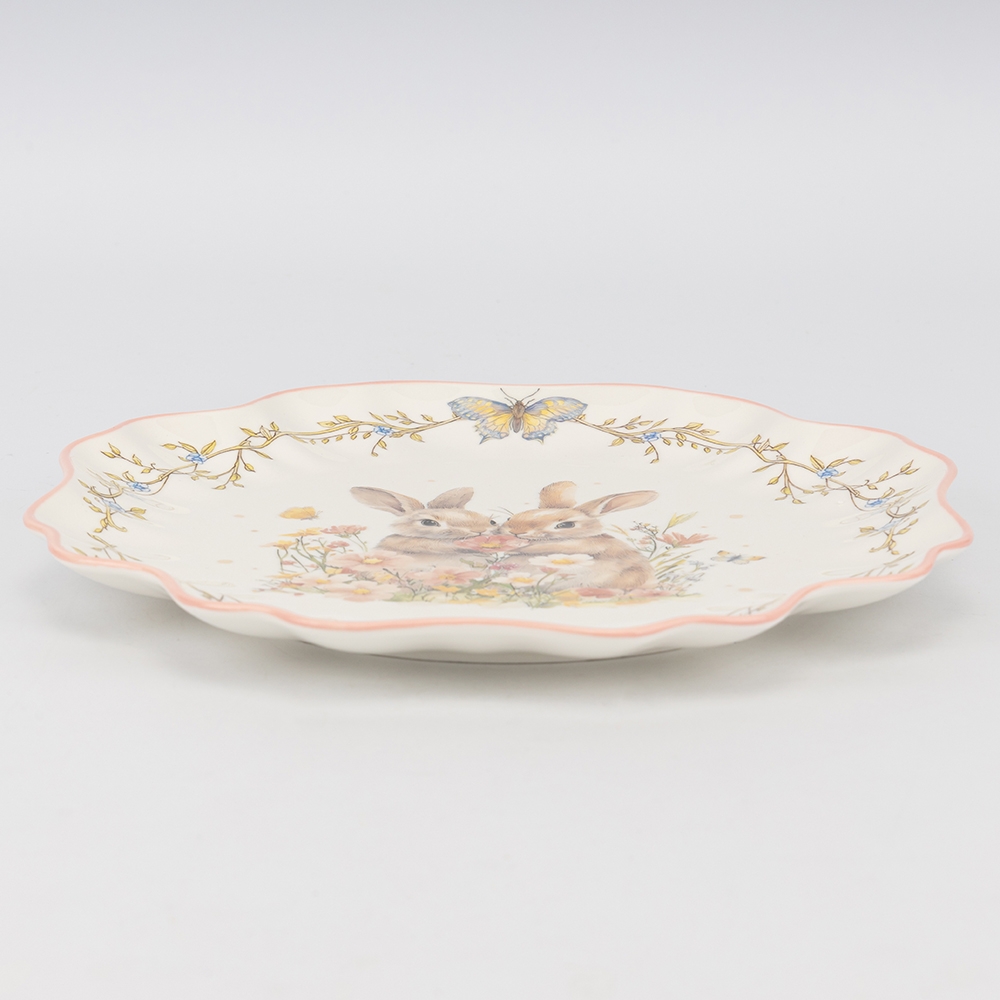 Тарілка "Пара кроликів у квітковому полі", біла, 26 см (5104-002)