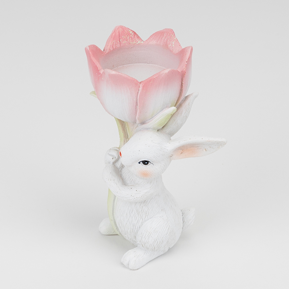> ВЕЛИКОДНІ ТОВАРИ > Великодній декор > Великодні фігурки > Підсвічник "Кролик з рожевим тюльпаном", 12,5 см (5105-004)