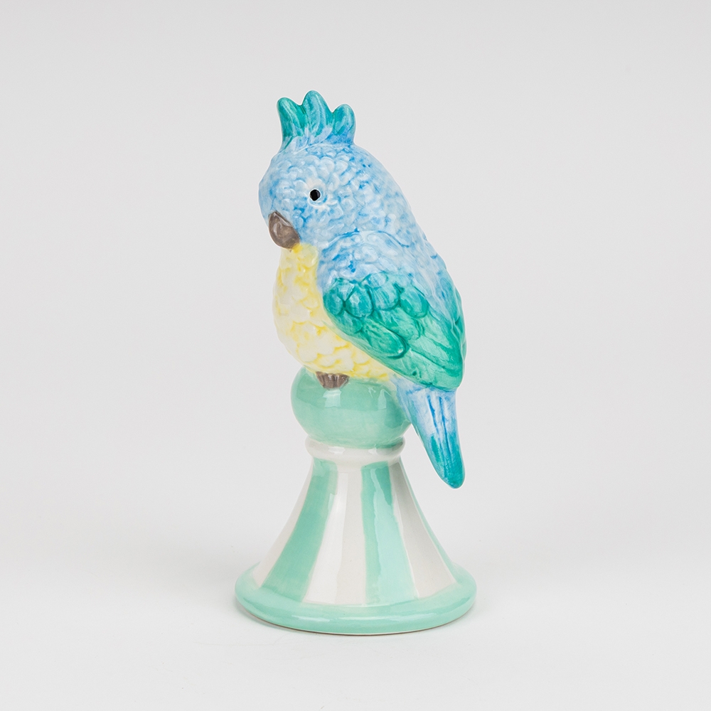 Висота статуетки — 17 см, довжина — 8 см, ширина — 8 см. Керамічна статуетка у вигляді папуги наповнює інтер’єр атмосферою легкості, радості та літнього настрою. Детально опрацьоване пір’я та плавні лінії створюють живий і виразний образ, який одразу привертає увагу. Статуетка гармонійно виглядає на полиці, консолі чи святковому столі, додаючи простору декоративного акценту та відчуття оновлення. Вона стане чудовим елементом весняного та літнього декору, а також приємним подарунком для поціновувачів керамічних прикрас.