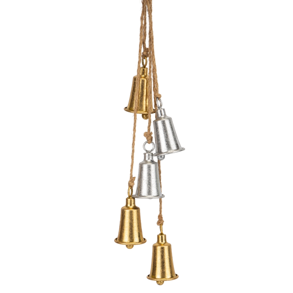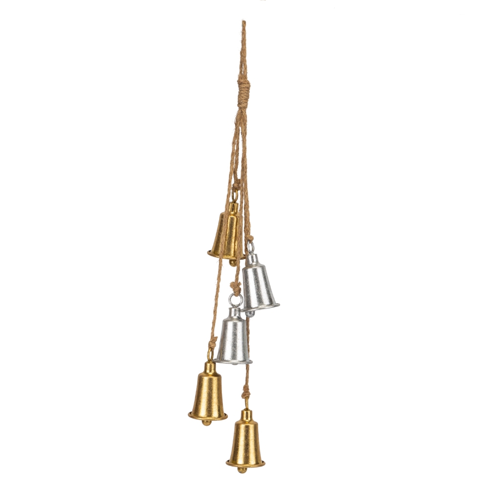 Підвіска з 5 металевих дзвіночків, срібно-золота, 66 см (6034-011)