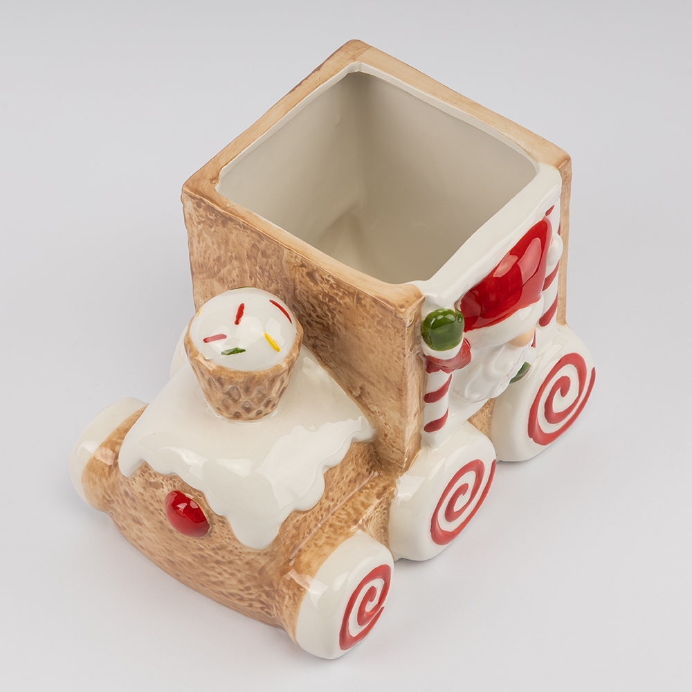 Висота - 21 см, довжина - 19 см, ширина - 14 см. Ця святкова керамічна ємність для зберігання — не лише практична річ для кухні, а й чарівний декор, що додає новорічного настрою. Завдяки якісному матеріалу та акуратному виконанню вона довго зберігатиме привабливий вигляд і стане улюбленою деталлю вашого святкового столу або полиці. Ідеально підходить для зберігання солодощів, печива чи дрібних смаколиків!