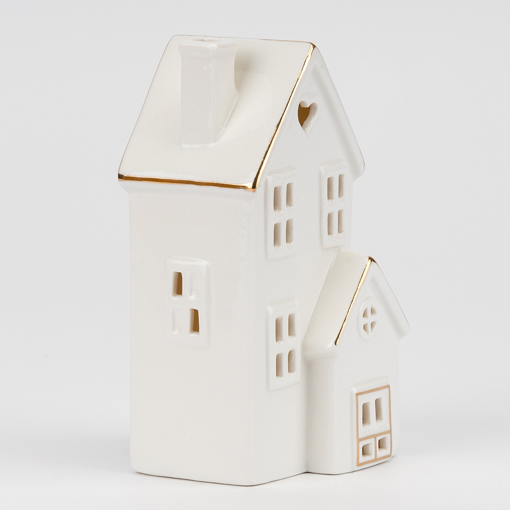 Висота - 14 см, довжина - 7,8 см, ширина - 6,8 см. Електрична свічка у формі будиночка виготовлена з міцної кераміки та оснащена LED-лампочкою. Завдяки реалістичному дизайну вона створює ефект затишного освітлення крізь віконця, нагадуючи тепле сяйво всередині дому. Ідеально підходить для декораторів, оформлення інтер'єрів у стилях хорека, кантрі, вінтаж або скандинавському стилі. Її можна використовувати для створення святкової атмосфери, романтичних вечорів чи тематичних заходів.