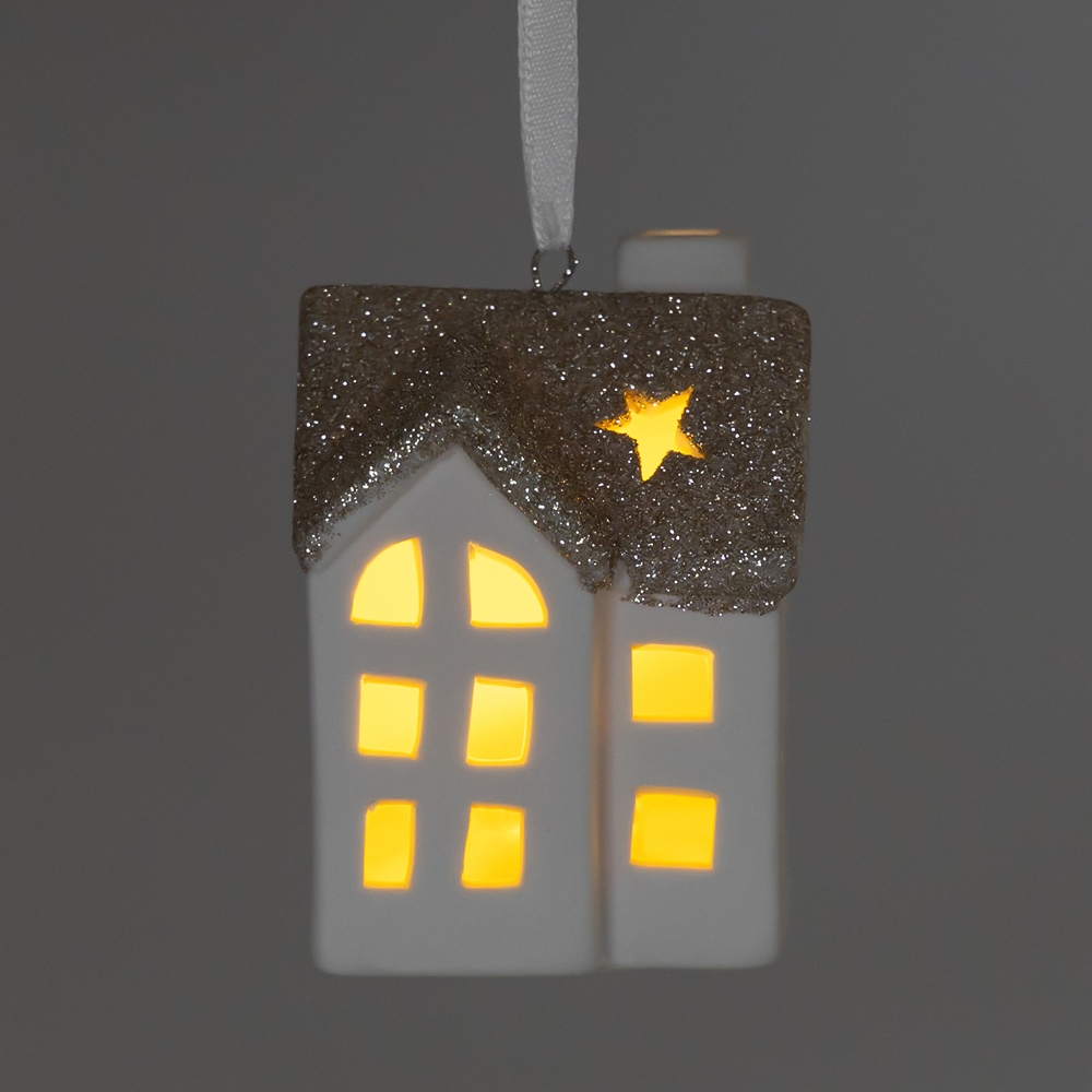 Світлодіодний будиночок (LED) з підвіскою, білий, 7,5 см (6039-009)