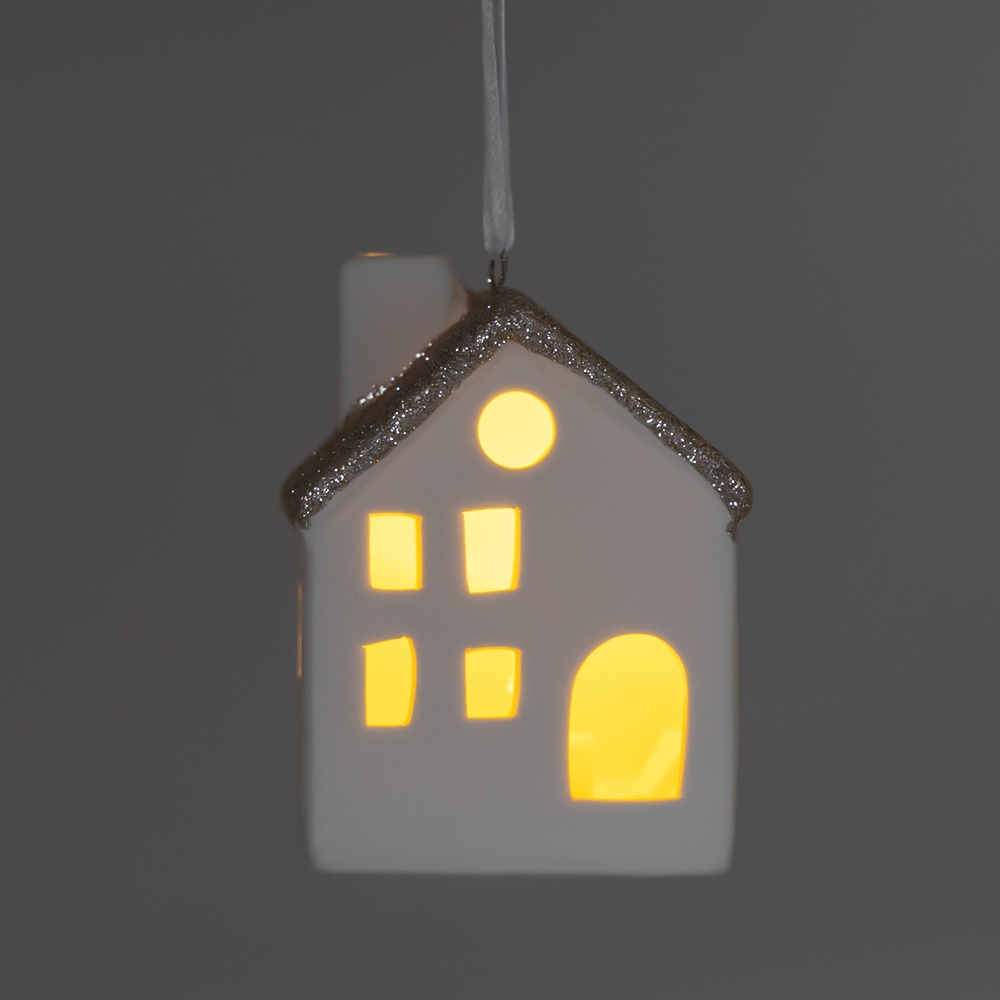 Світлодіодний будиночок (LED) з підвіскою, білий, 7,5 см (6039-010)