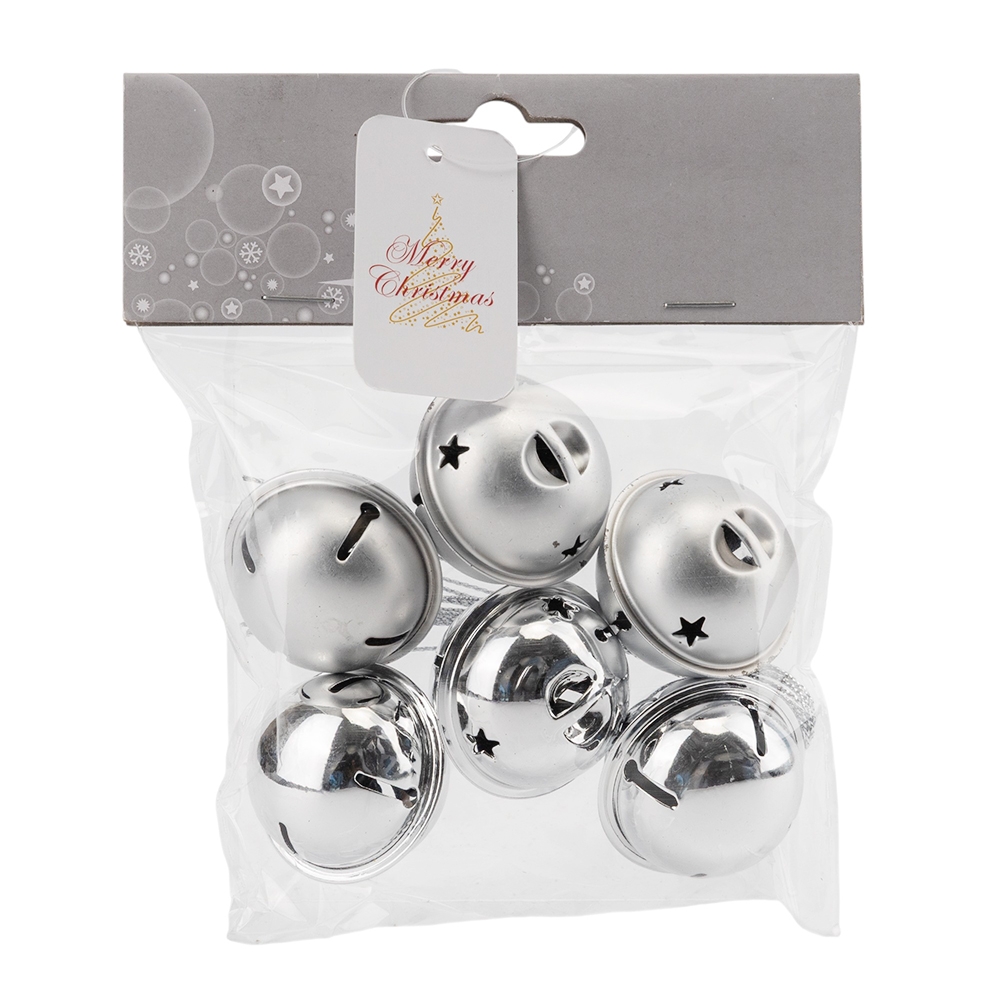 В наборі 6 шт. Набір срібних дзвіночків – стильне рішення для створення затишної новорічної атмосфери. Дзвіночки виконані з металу, тому міцні та довговічні. У комплекті поєднані матові та глянцеві прикраси, які під світлом гірлянд сяють і переливаються, роблячи ваш декор ще більш ефектним.