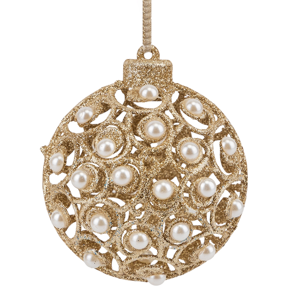 Золота блискуча ялинкова іграшка з пластику стане яскравим акцентом у вашому святковому декорі. Її поверхня вкрита дрібними блискітками, які красиво переливаються під світлом гірлянд, створюючи ефект розсіяного сяйва. Легка та міцна, вона ідеально підходить для прикрашання ялинки, надаючи їй ніжності та святкового шарму.