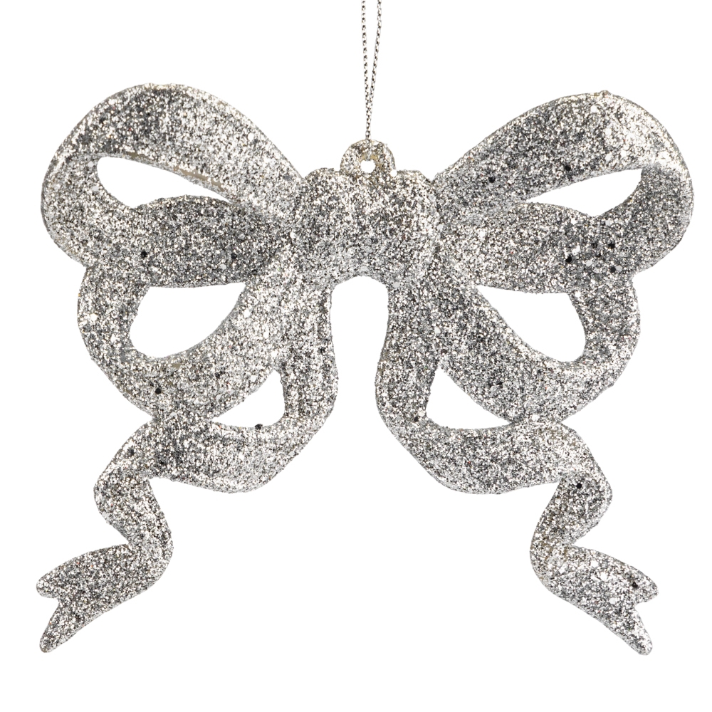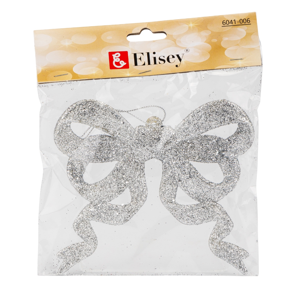 Ялинкова іграшка "Блискучий бантик", срібна, 12 см (6041-006)