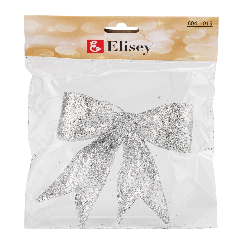 Ялинкова іграшка "Блискучий бантик", срібна, 11 см (6041-015)