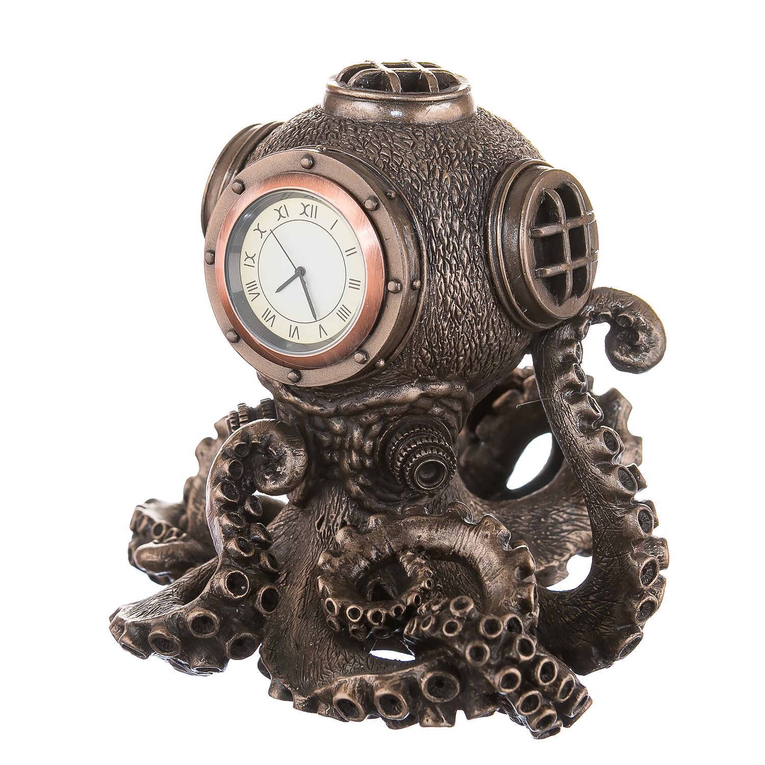 Часы "Осьминог" выполнена в стиле стимпатик от известного бренда Veronese, станет оригинальным акцентом в интерьере и задаст неповторимую атмосферу. Осьминог – моллюск, который символизирует долголетие, возрождение и вечную жизнь. Все потому, что у него три сердца и он может наращивать раненые или утраченные конечности. Часы изготовлена из полистоуна (искусственного камня) и покрыта бронзовым напылением. Запакована в пенопласт и красивую подарочную упаковку.