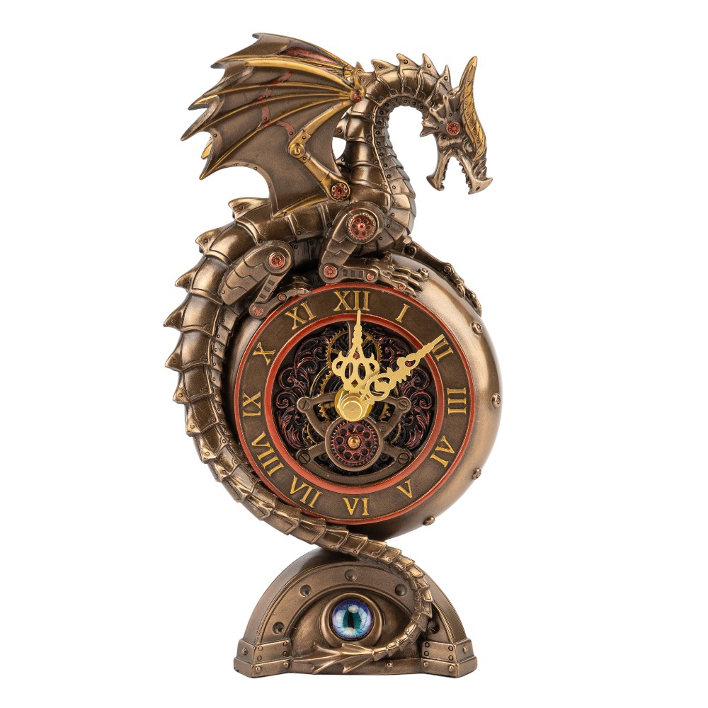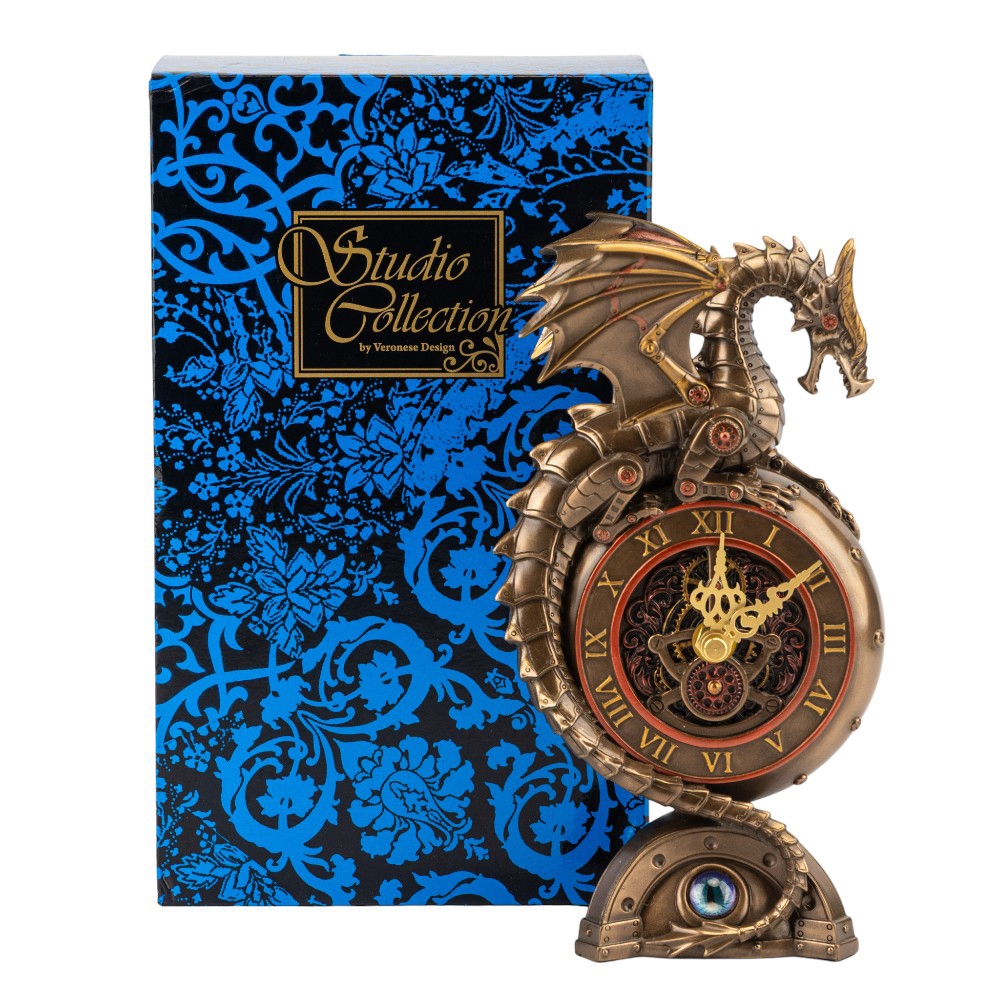 Висота — 23 см, довжина — 12 см, ширина — 10 см. Годинник Veronese виготовлений ​​з полістоуну — штучного каменю. Запакований в подарункову коробку. Упаковка з пінопласту з індивідуальними поглибленнями для кожного елемента забезпечує максимальний захист товару під час транспортування. Вражаючий годинник у формі дракона поєднує силу міфічного символу з магією часу. Металевий блиск бронзового корпусу, готичні деталі та яскраве «око» біля основи створюють ефект справжнього артефакту з легенд про володарів стихій. Дракон, обвивши корпус із римськими цифрами, наче охороняє час і спокій свого власника. Цей годинник стане не лише функціональним елементом інтер’єру, а й потужним акцентом, що уособлює владу, мудрість і вічний рух.