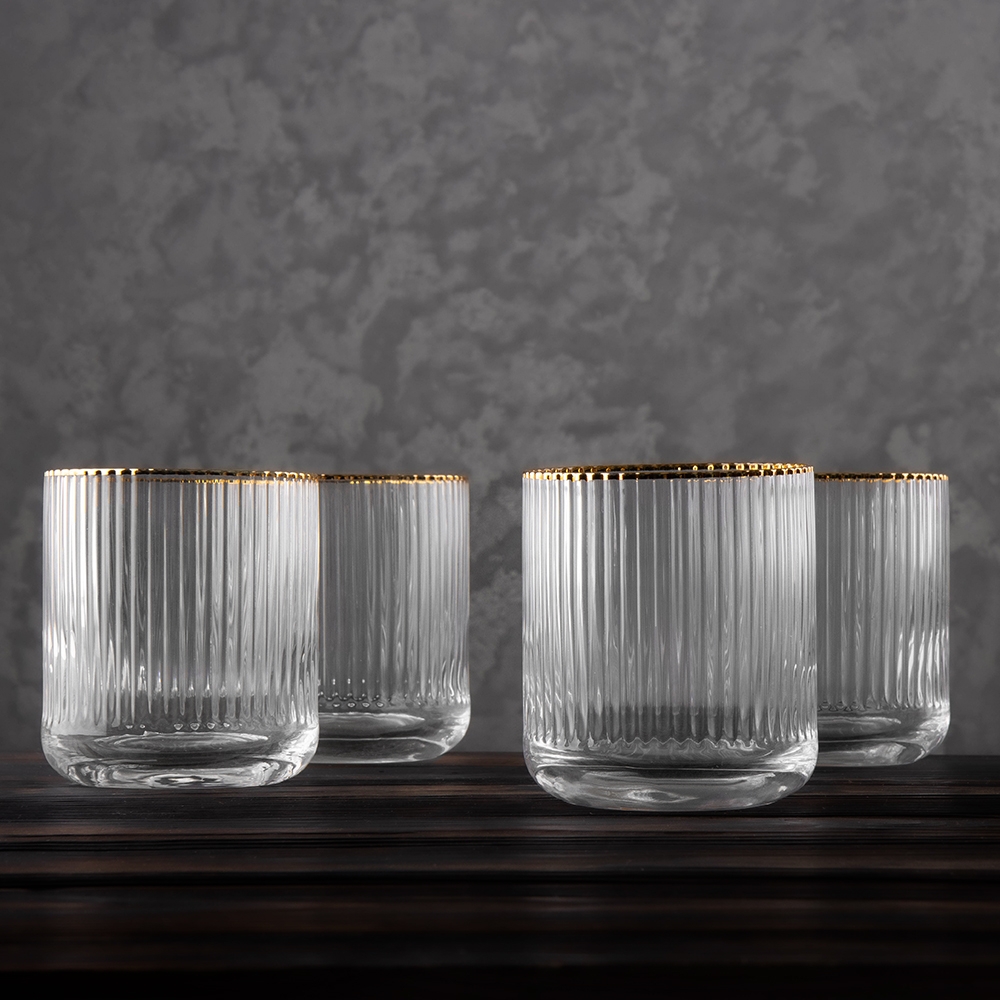Стильні склянки - це чудовий подарунок для людей, які цінують вишуканість та елегантність у сервіруванні. Цей набір склянок можна подарувати як для чоловіків, так і для жінок, які цінують якісні та стильні предмети в інтер'єрі. Склянки з вишуканою золотою обводкою ідеально підходять для урочистих моментів та святкових вечорів. Будучи частиною інтер'єру, ці склянки додадуть шарму та естетики будь-якому заходу. Їх можна використовувати для подачі та насолоди улюбленими напоями, такими як лимонади, сік, коктейлі тощо. Золота обводка додає кожній склянці особливий блиск та створює атмосферу розкішного та елегантного прийому.