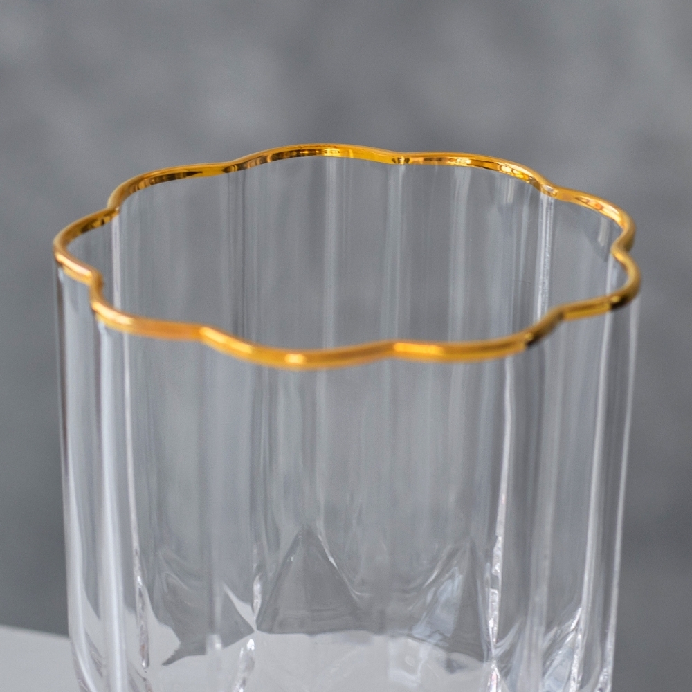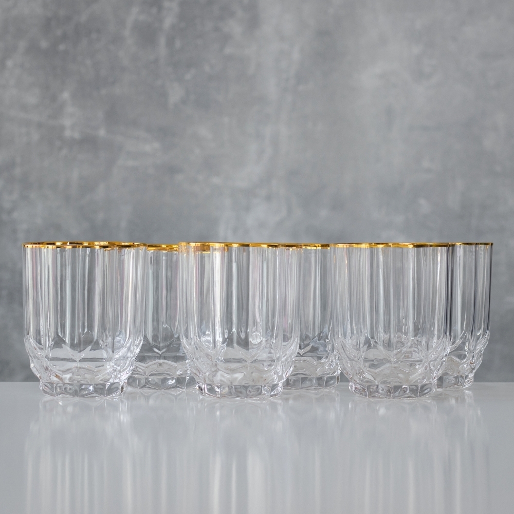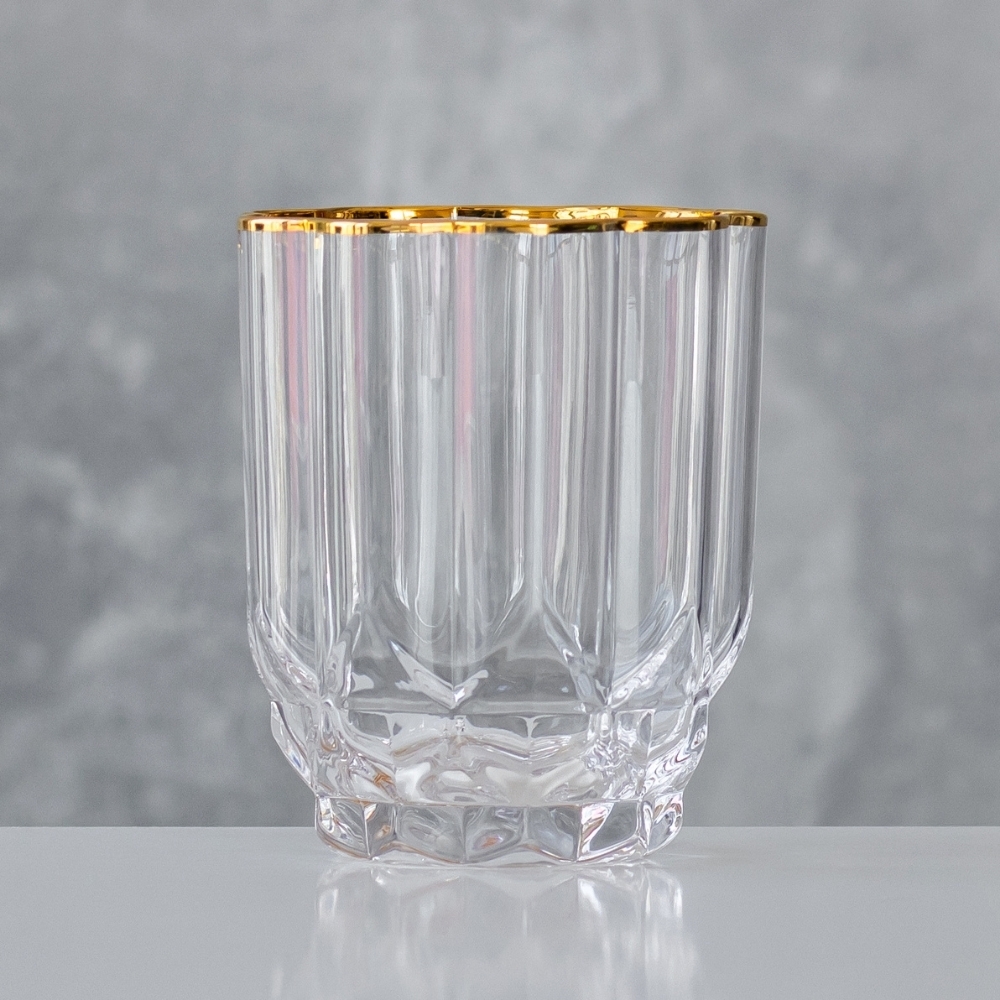 Об'єм склянок - 330 мл. Висота - 10 см, діаметр - 8,3 см. Склянки запаковані по 6 шт. в крафтову коробку. Стильні склянки - це чудовий подарунок для людей, які цінують вишуканість та елегантність у сервіруванні. Цей набір склянок можна подарувати як для чоловіків, так і для жінок, які цінують якісні та стильні предмети в інтер'єрі. Склянки з вишуканими гранями ідеально підходять для урочистих моментів та святкових вечорів. Будучи частиною інтер'єру, ці склянки додадуть шарму та естетики будь-якому заходу. Їх можна використовувати для подачі та насолоди улюбленими напоями, такими як лимонади, сік, коктейлі тощо.