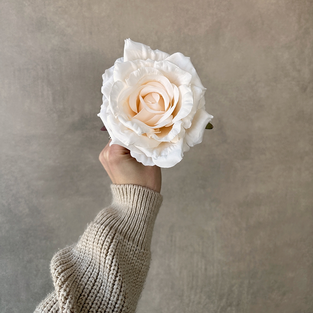 Діаметр - 11 см, висота - 9,5 см.Штучна головка троянди — ідеальне рішення для оздоблення інтер'єрів у сфері HoReCa. Бутон виготовлений з якісної тканини, що точно імітує природну текстуру пелюсток. Хвостик стебла виконаний із пластику, забезпечуючи легке кріплення до декору або композицій. Завдяки натуральному вигляду, квітка вдало підходить для оформлення весіль, вітрин, залів ресторанів та готелів.