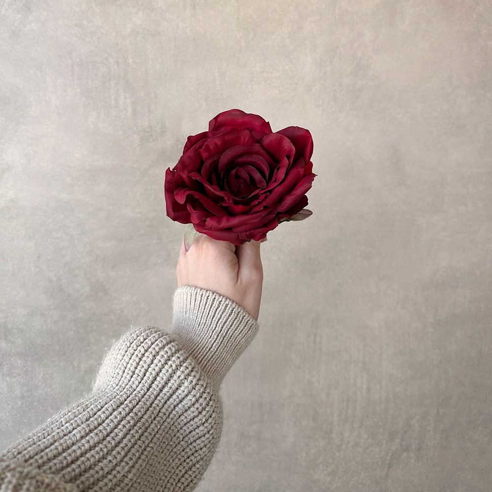Діаметр - 11 см, висота - 9,5 см.Штучна головка троянди — ідеальне рішення для оздоблення інтер'єрів у сфері HoReCa. Бутон виготовлений з якісної тканини, що точно імітує природну текстуру пелюсток. Хвостик стебла виконаний із пластику, забезпечуючи легке кріплення до декору або композицій. Завдяки натуральному вигляду, квітка вдало підходить для оформлення весіль, вітрин, залів ресторанів та готелів.