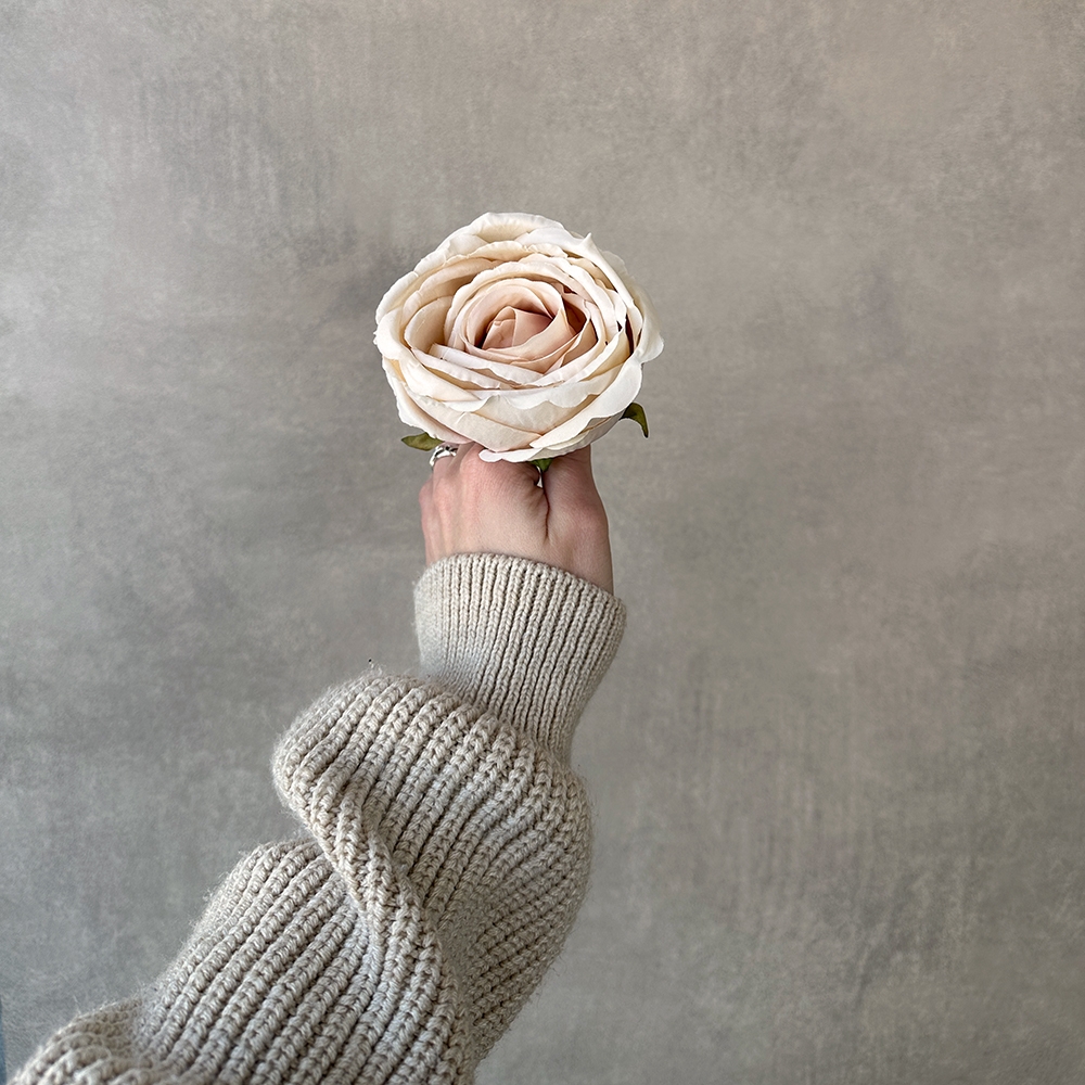 Діаметр - 9 см, висота - 8 см. Штучна головка троянди — ідеальне рішення для створення витончених флористичних композицій у закладах HoReCa та декорі інтер’єрів. Бутон виготовлений із м’якої тканини, яка правдоподібно імітує живу квітку, а зелений пластиковий хвостик забезпечує легке кріплення. Листя та пелюстки також з тканини, що додає виробу натуральності. Підійде для оформлення бенкетів, вітрин, фотозон чи весільного декору.