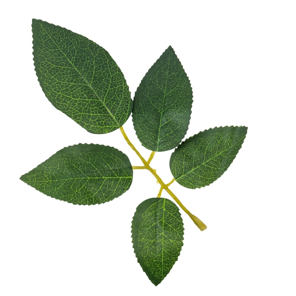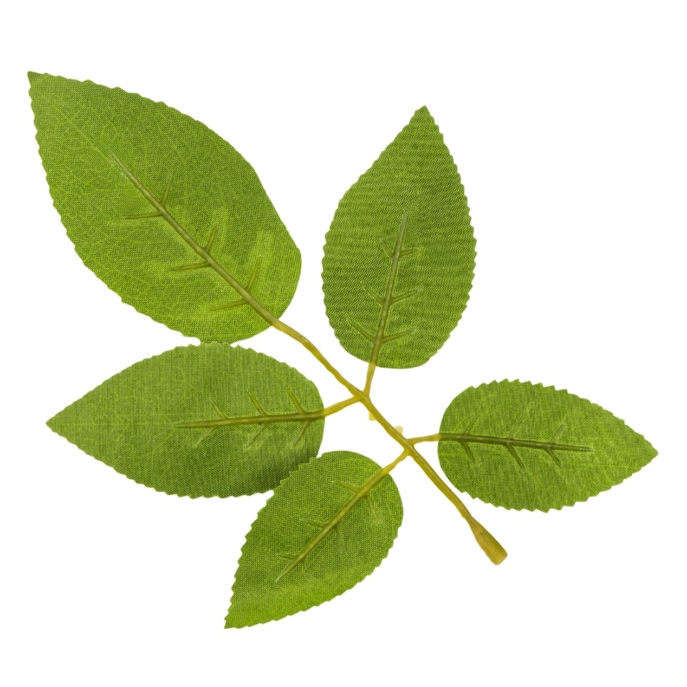 Листя фасується в упаковки по 250 грамів. Ціна вказана за 1 таку упаковку. Мінімальне замовлення — 1 шт. На 1 гілочці 5 листочків. Довжина 1 гілочки - 15,2 см, ширина - 11,5 см. Довжина найбільшого листочка на гілочці - 8 см, ширина - 4,5 см. Довжина найменшого листочка - 5 см, ширина - 3 см. Штучне листя троянди на гнучкій гілочці виготовлене з тканини, що надає йому реалістичної текстури та природного вигляду. Представлене у темно-зеленому та світло-зеленому відтінках, воно ідеально підходить для створення флористичних композицій, оформлення букетів, фотозон та інтер’єрного декору. Завдяки гнучкій основі листочки можна легко моделювати, що робить їх зручними у використанні. Це універсальний декоративний елемент для креативних хендмейд-проєктів, весільного та святкового оформлення.
