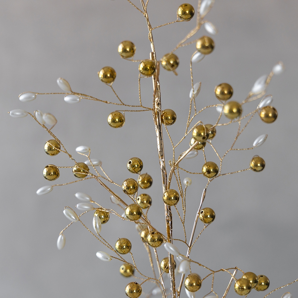 Висота - 48 см, ширина - 27 см. Декоративне золоте дерево з бусинами — це вишуканий елемент святкового декору, який поєднує елегантність і магію свята. Його золоті гілки виглядають витончено та розкішно, а перламутрові та золоті бусини нагадують краплі роси та маленькі дорогоцінні камінчики. Таке дерево стане центральною прикрасою будь-якого простору — від домашнього інтер’єру до святкових вітрин магазинів або новорічних вечірок. Його можна розмістити на столі, каміні або біля ялинки, де воно додасть святкової атмосфери та привертатиме увагу своєю незвичайною красою. Золоте дерево є ідеальним вибором для тих, хто шукає стильний і витончений декор для зимових свят.
