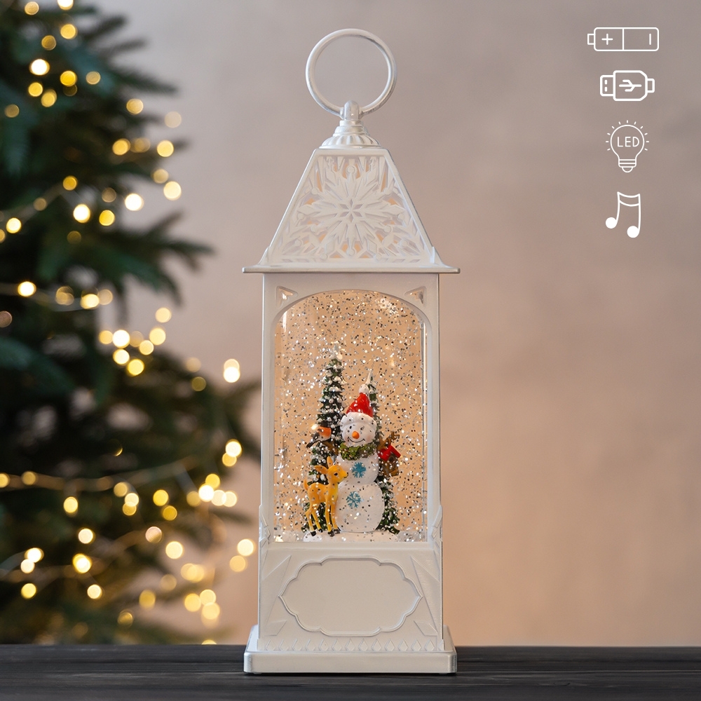 Новорічний ліхтар з підсвіткою та музикою "Сяючий сніговик", 31,5 см (9240-004)