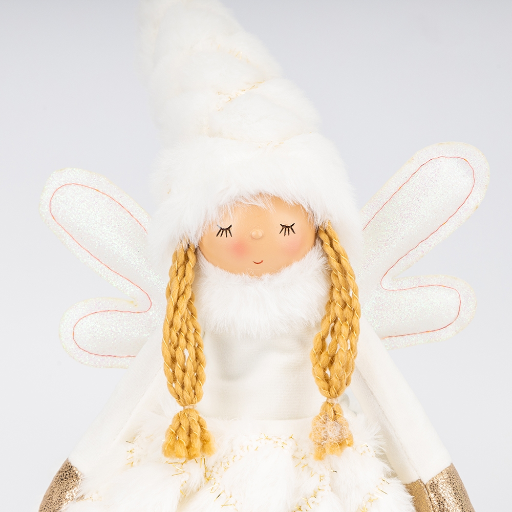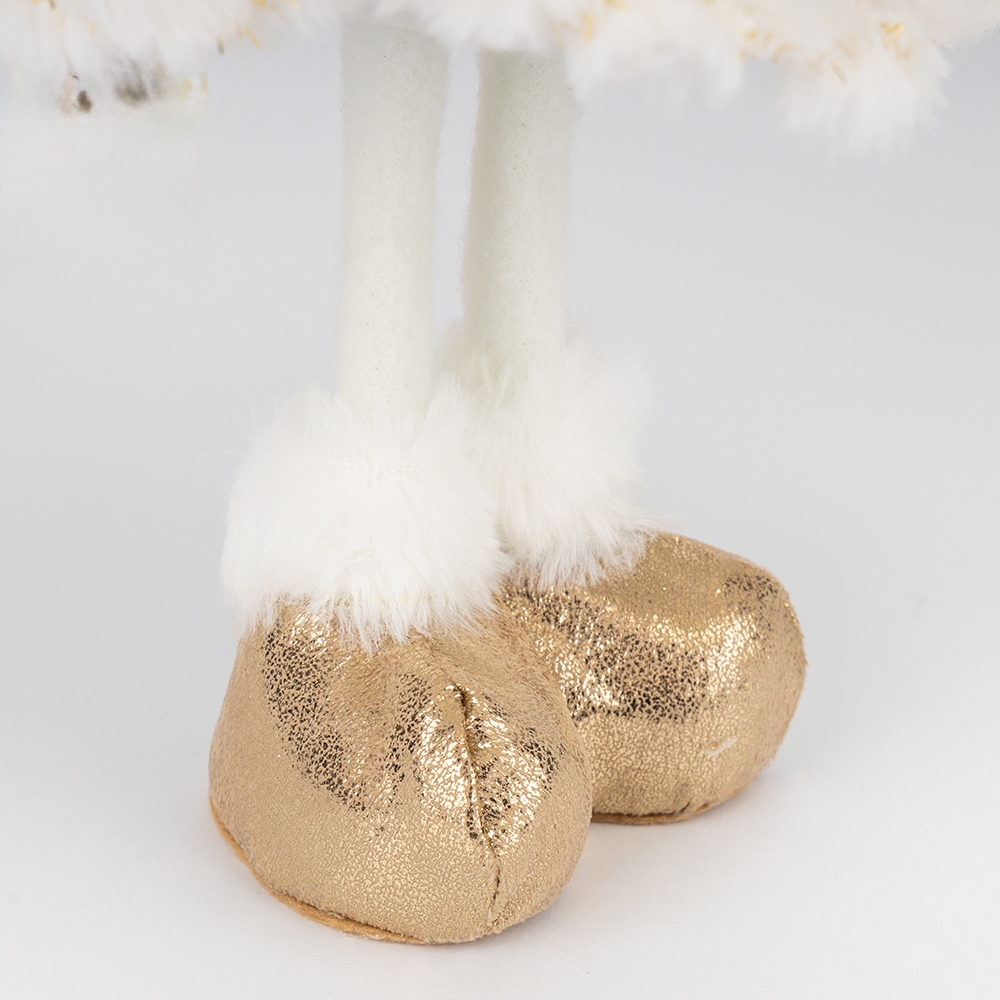Висота - 37 см, ширина - 13 см. М’яка текстильна новорічна іграшка – це чарівний декор для святкового інтер’єру, виготовлений з м’яких і приємних на дотик матеріалів. Ніжні кольори та деталі додають їй особливого шарму та святкового настрою. Іграшка оснащена підсвіткою, яка створює ще більш теплу та магічну атмосферу у вашому домі. Вона ідеально підходить для прикрашання ялинки, каміна, або використання в якості подарунка, що принесе радість та затишок у кожен дім. Фігурка стійко стоїть.