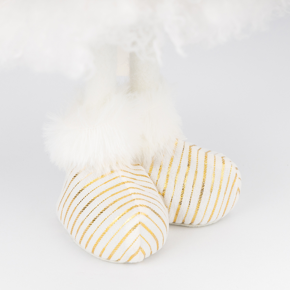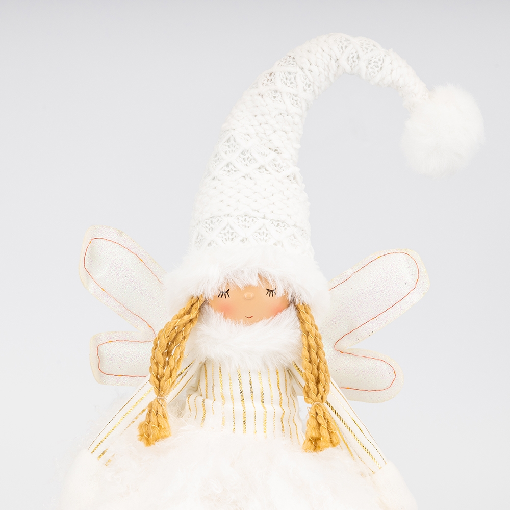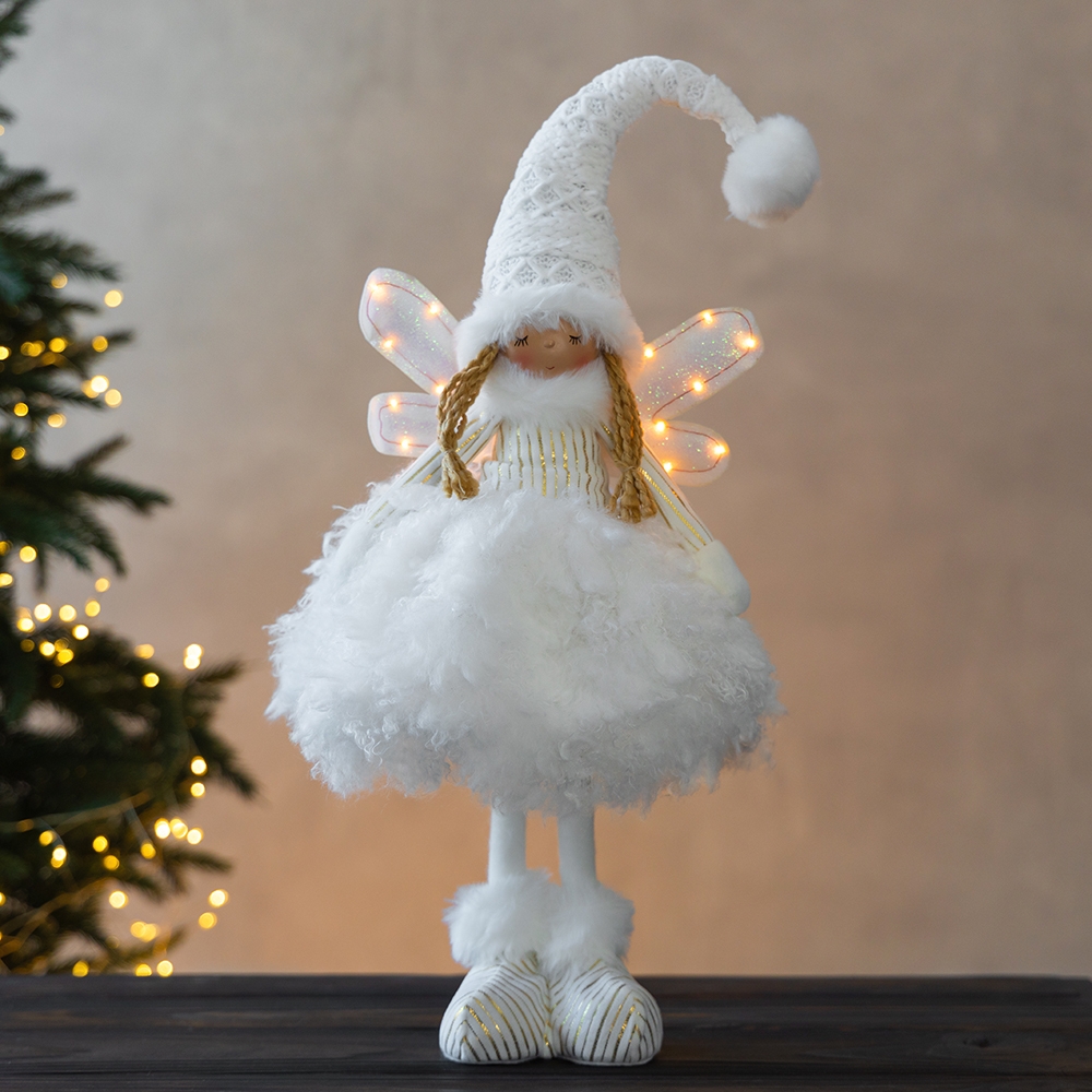Висота - 35 см, ширина - 14 см. М’яка текстильна новорічна іграшка – це чарівний декор для святкового інтер’єру, виготовлений з м’яких і приємних на дотик матеріалів. Ніжні кольори та деталі додають їй особливого шарму та святкового настрою. Іграшка оснащена підсвіткою, яка створює ще більш теплу та магічну атмосферу у вашому домі. Вона ідеально підходить для прикрашання ялинки, каміна, або використання в якості подарунка, що принесе радість та затишок у кожен дім. Фігурка стійко стоїть.