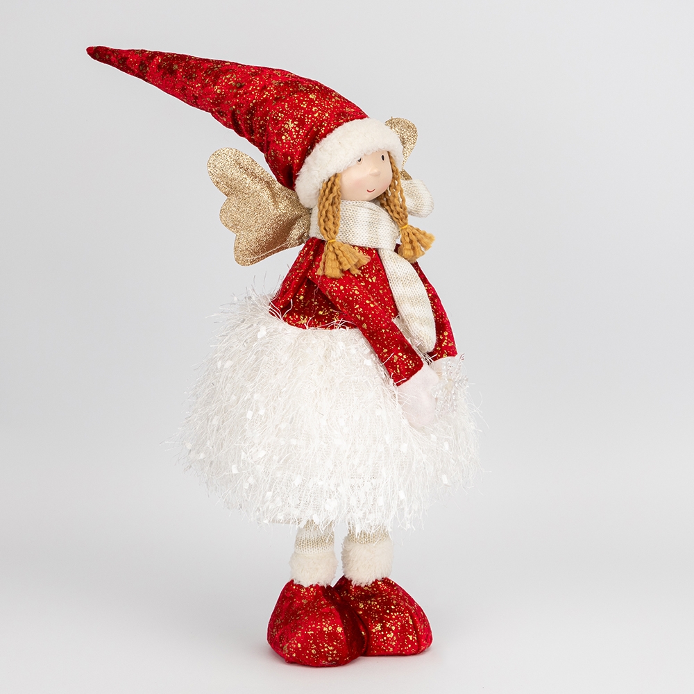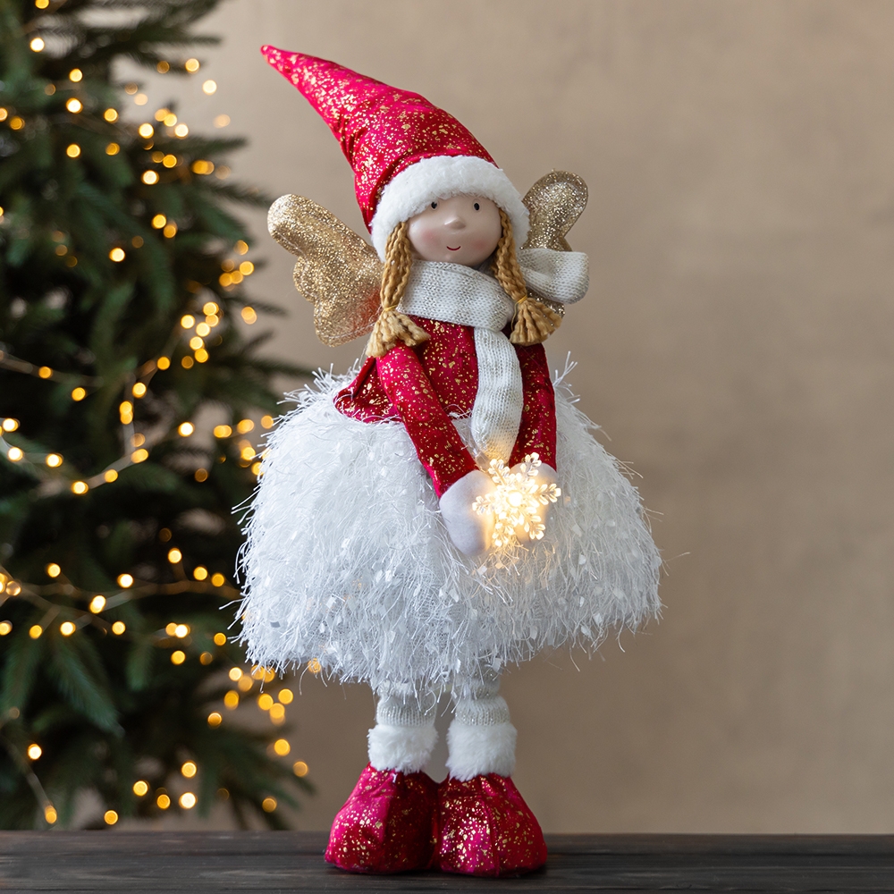 Висота - 70 см, ширина - 19 см. М'яка текстильна новорічна іграшка – це чарівний декор для святкового інтер'єру, виготовлений з м'яких і приємних на дотик матеріалів. Ніжні кольори та деталі додають їй особливого шарму та святкового настрою. Іграшка оснащена підсвіткою, яка створює ще більш теплу та магічну атмосферу у вашому домі. Вона ідеально підходить для прикрашання ялинки, каміна, або використання в якості подарунка, що принесе радість та затишок у кожен дім. Фігурка стійко стоїть.