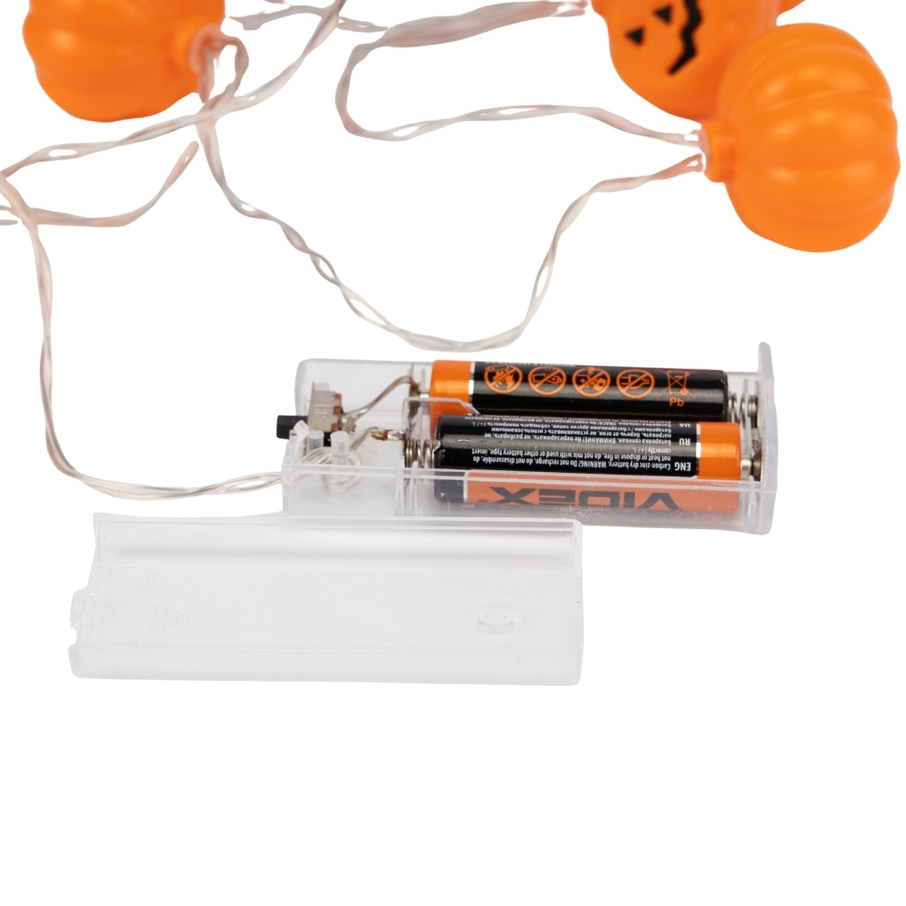 Довжина - 190 см, діаметр 1 світлового елемента - 4,5 см. Оригінальна гірлянда у вигляді гарбузиків — те, що потрібно для створення по-справжньому моторошної атмосфери на Хелловін! Світлодіоди м’яко мерехтять теплим світлом і створюють особливу атмосферу у темряві. Живлення від батарейок (2 × АА, у комплект не входять) дозволяє розмістити гірлянду будь-де — на вході, на столі, в інтер’єрі фотозони або над каміном. Ідеальний декор для тематичних вечірок, івентів, фотозон та оформлення залів.