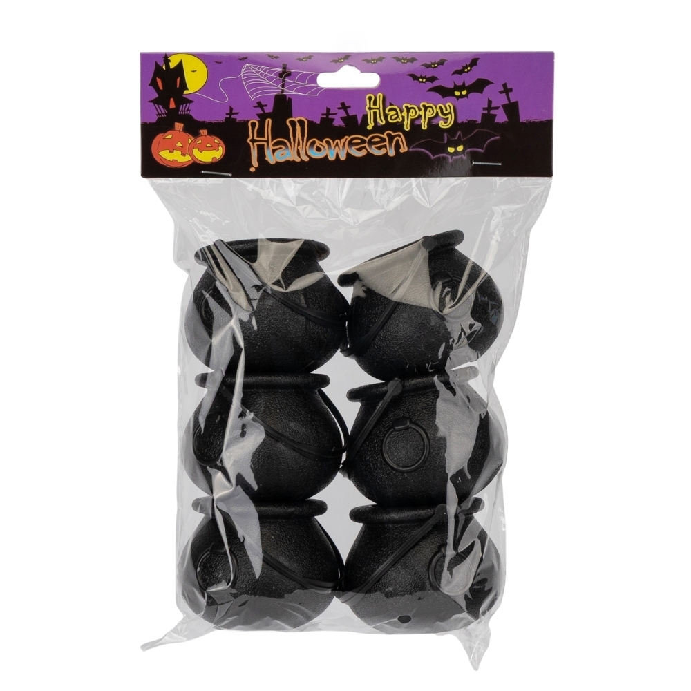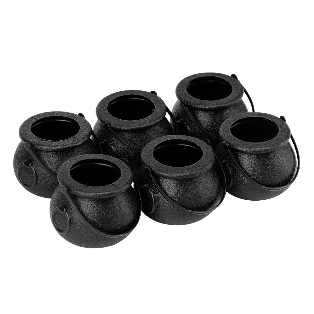 Висота - 5,5 см. Діаметр - 6,5 см. Декор на Хелловін у формі казана з пластику може створити вражаючий ефект на святкуванні. Казан можна розмістити на центральній площі, заповнений фантастичними предметами, які символізують хелловінську атмосферу, наприклад, пластикові черепи, гримучі змії або крихітні гробики. Додавання підсвічування під казан, можливо, за допомогою кольорових світлодіодних ламп або факелів, створить жахливу ауру, що зацікавить гостей та створить особливу атмосферу на святі.