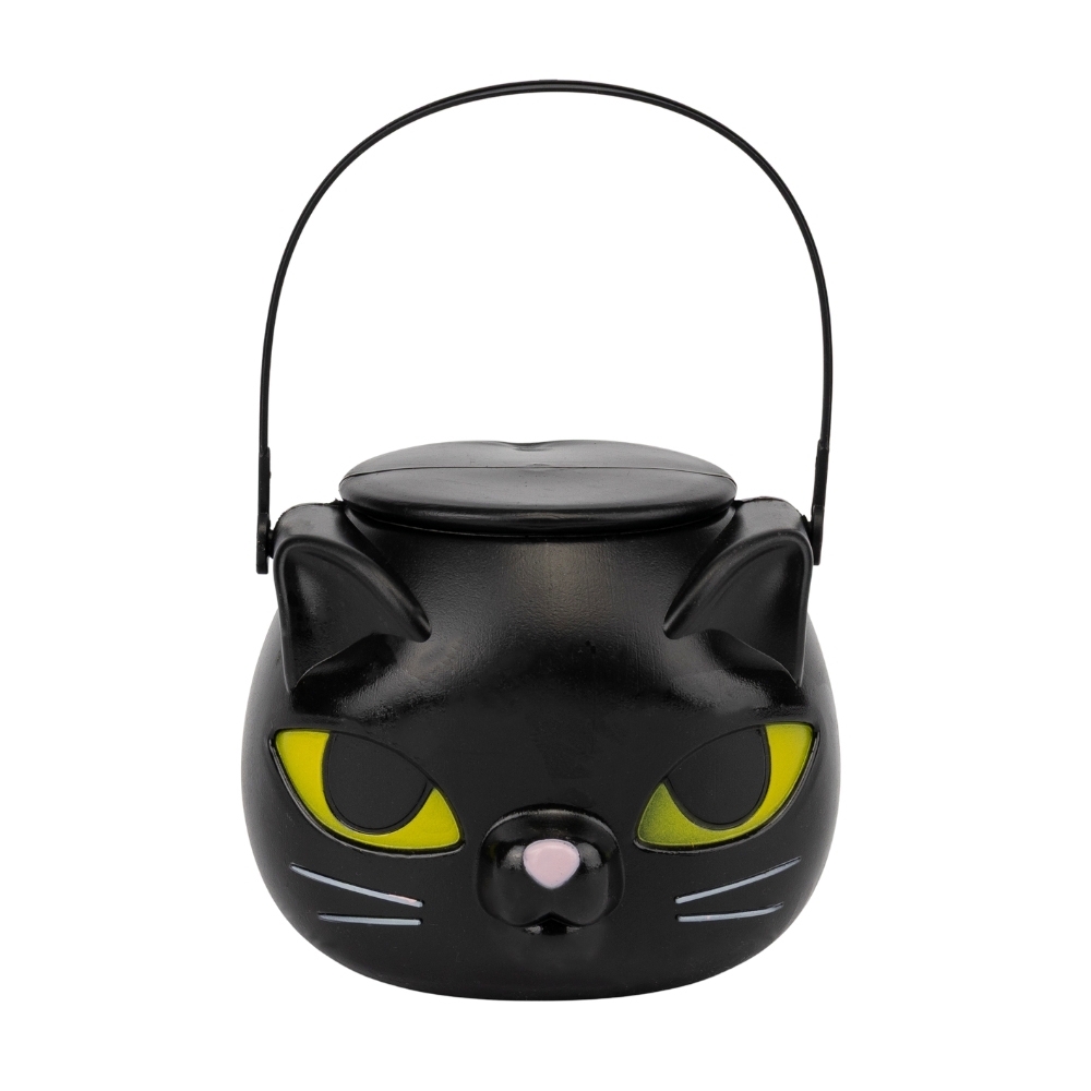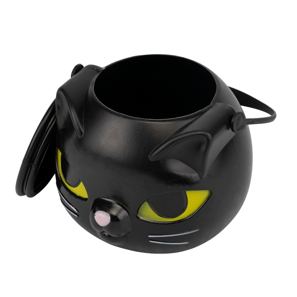 Висота з ручкою - 19 см, без - 10,5 см. Діаметр - 12,5 см. Декор на Хелловін у формі казана з пластику може створити вражаючий ефект на святкуванні. Казан можна розмістити на центральній площі, заповнений фантастичними предметами, які символізують хелловінську атмосферу, наприклад, пластикові черепи, гримучі змії або крихітні гробики. Додавання підсвічування під казан, можливо, за допомогою кольорових світлодіодних ламп або факелів, створить жахливу ауру, що зацікавить гостей та створить особливу атмосферу на святі.