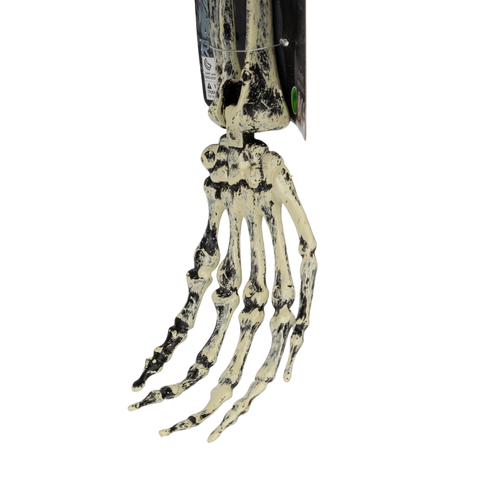 Висота - 35 см, ширина - 9 см. Декор на Хелловін у формі скелета є популярним елементом для створення жахливої атмосфери. Скелети можуть бути використані для прикраси приміщень. Вони виготовлені з пластику, що є безпечним декором.