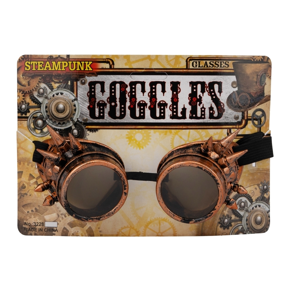 Довжина окулярів - 14 см, ширина - 5,5 см. Довжина ременя - 40 см. Окуляри “Панк” — незамінний аксесуар для образів у стилі стімпанк, кіберпанк чи постапокаліпсис. Модель із затемненими лінзами та шипами виглядає зухвало й ефектно, чудово доповнюючи тематичні костюми на Геловін чи вечірку. Завдяки еластичній резинці окуляри зручно фіксуються на голові. Легка пластикова конструкція підходить для багаторазового використання.