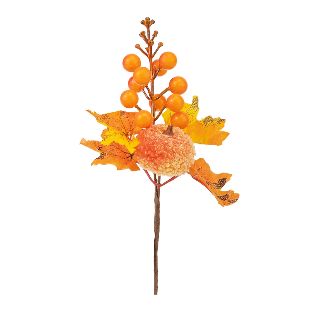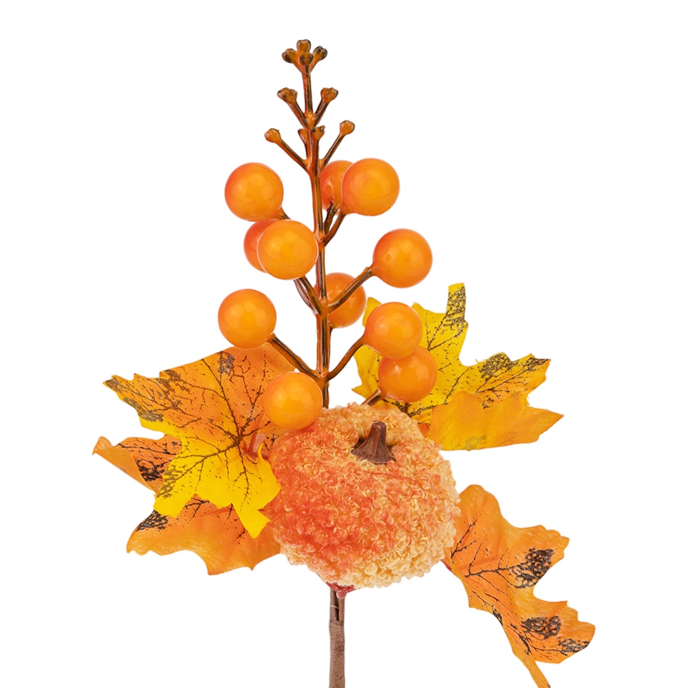 Висота - 25 см. Штучна гілка із поєднанням декоративних ягід та листя у теракотово-жовтих тонах. Додає виразного акценту в осінньому декорі та гармонійно поєднується з іншими елементами сезонних композицій. Ідеально підходить для HoReCa, фотозон і святкового оздоблення.