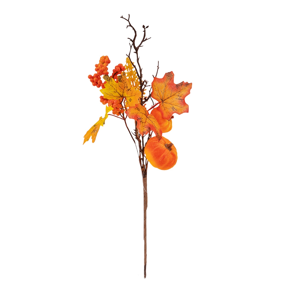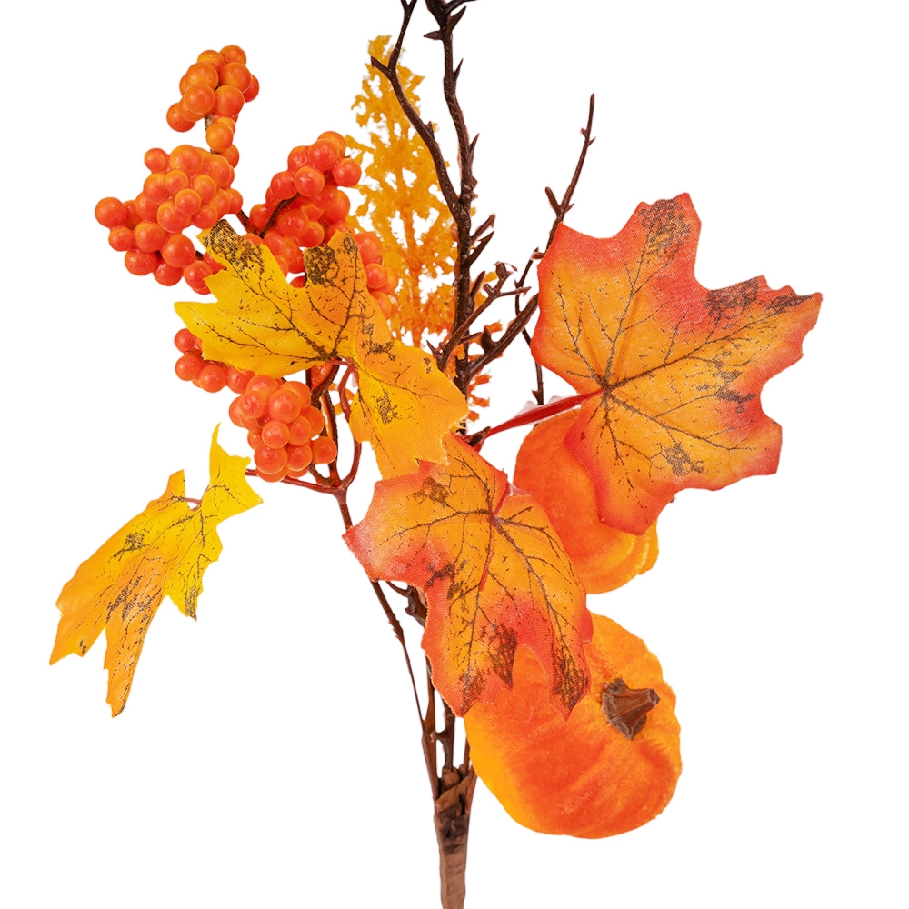 Штучна гілка «Лісова казка», висота 38 см, має теплі жовто-гарячі та червонувато-коричневі відтінки. Ягоди та листя з детальним опрацюванням ідеально підходять для святкового або тематичного декору.