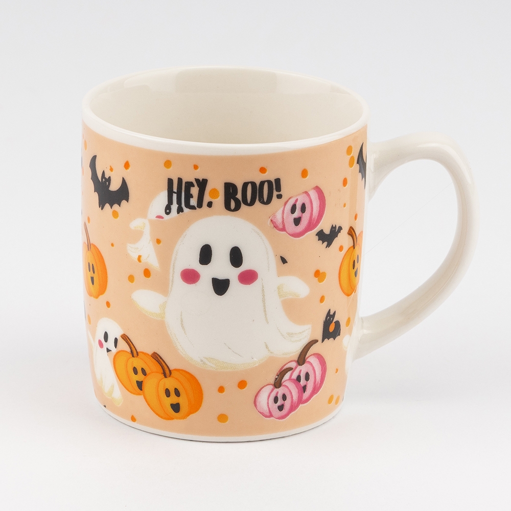 Керамічна кружка з ложечкою на тему Хелловіну оформлена яскравим принтом із гарбузиками та поставляється у подарунковому пакуванні з прозорим віконцем. Обʼєм 200 мл підходить для чаю, кави чи какао, ложечка зручно кріпиться в ручці. Такий набір стане актуальним подарунком у сезон осінніх свят або стильним доповненням до тематичного декору. Підходить для роздрібного продажу, кафе, магазинів подарунків і HoReCa.
