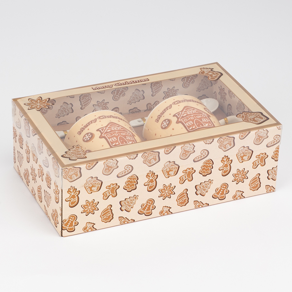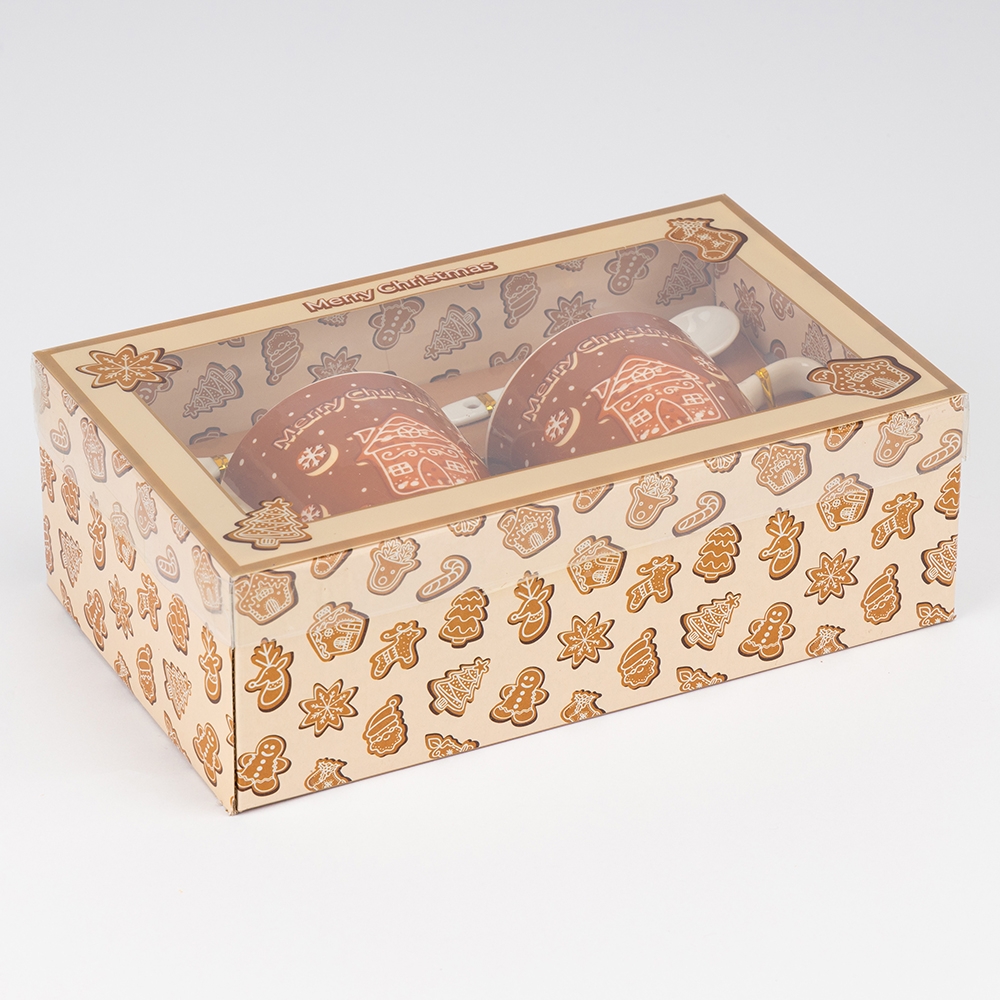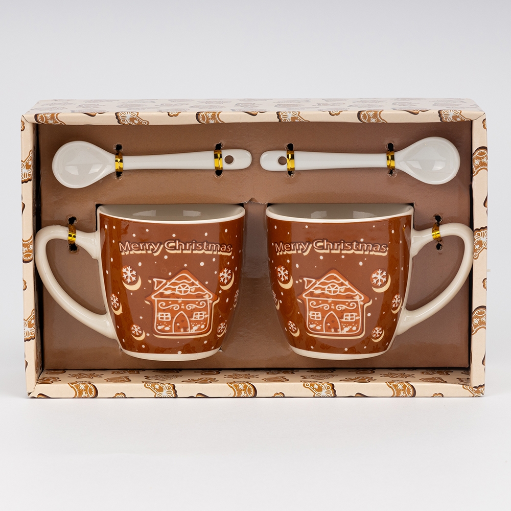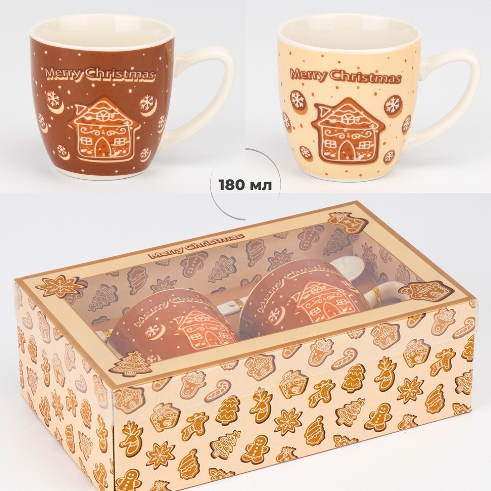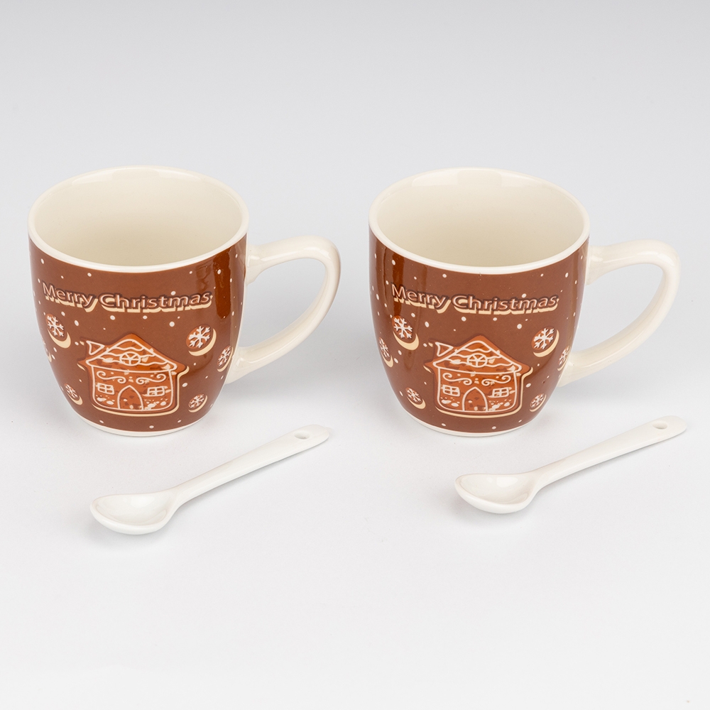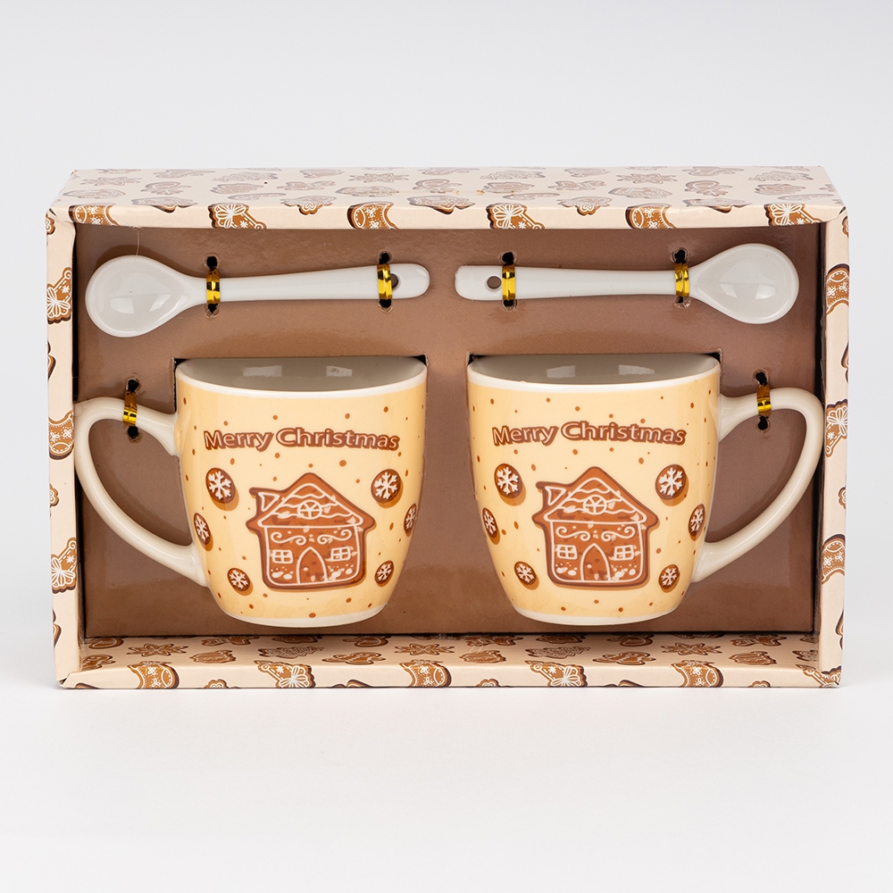 Набір з 2 кружок з ложечками "Merry Christmas", 180 мл * Рандомний вибір дизайну (9250-022)