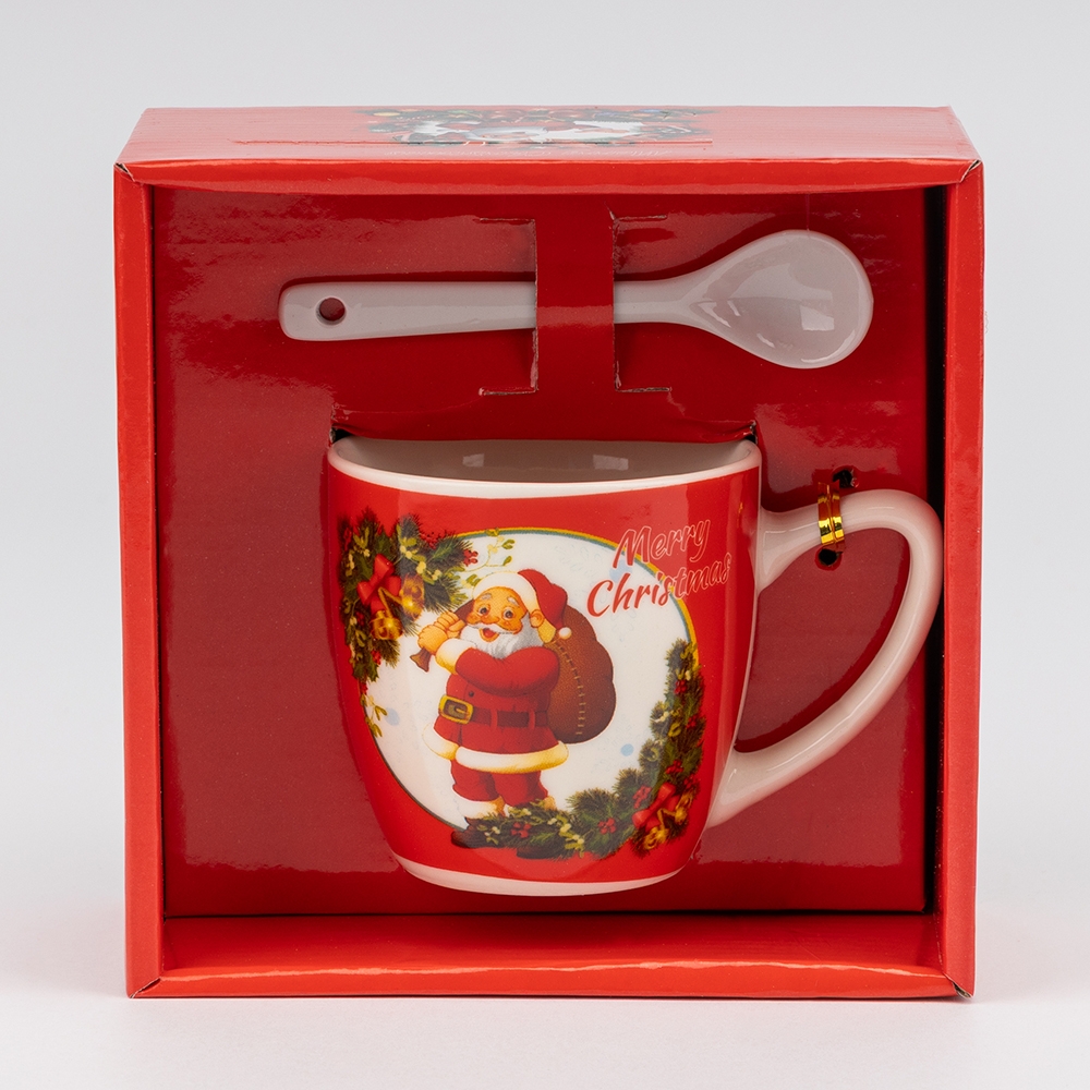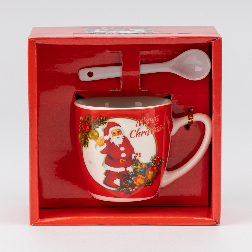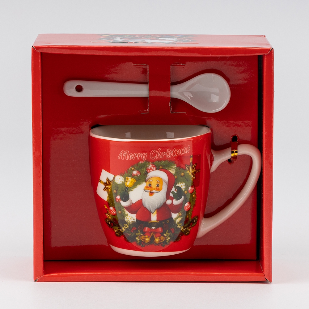 Кружка з ложечкою "Happy Santa", 180 мл * Рандомний вибір дизайну (9250-026)