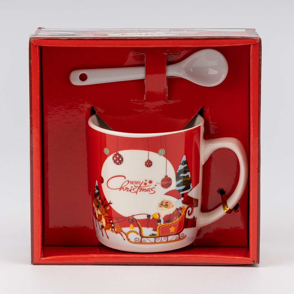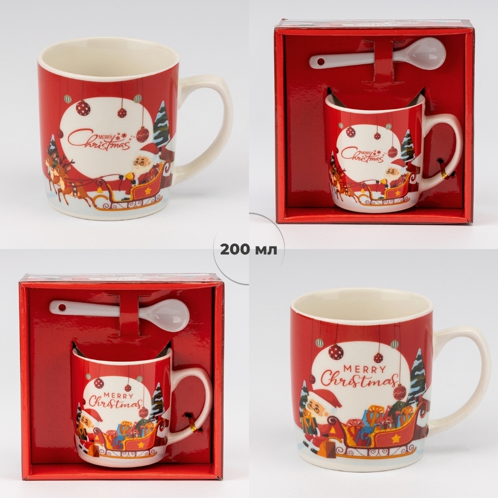 Кружка з ложечкою "Подарунки від Санти", 200 мл * Рандомний вибір дизайну (9250-027)