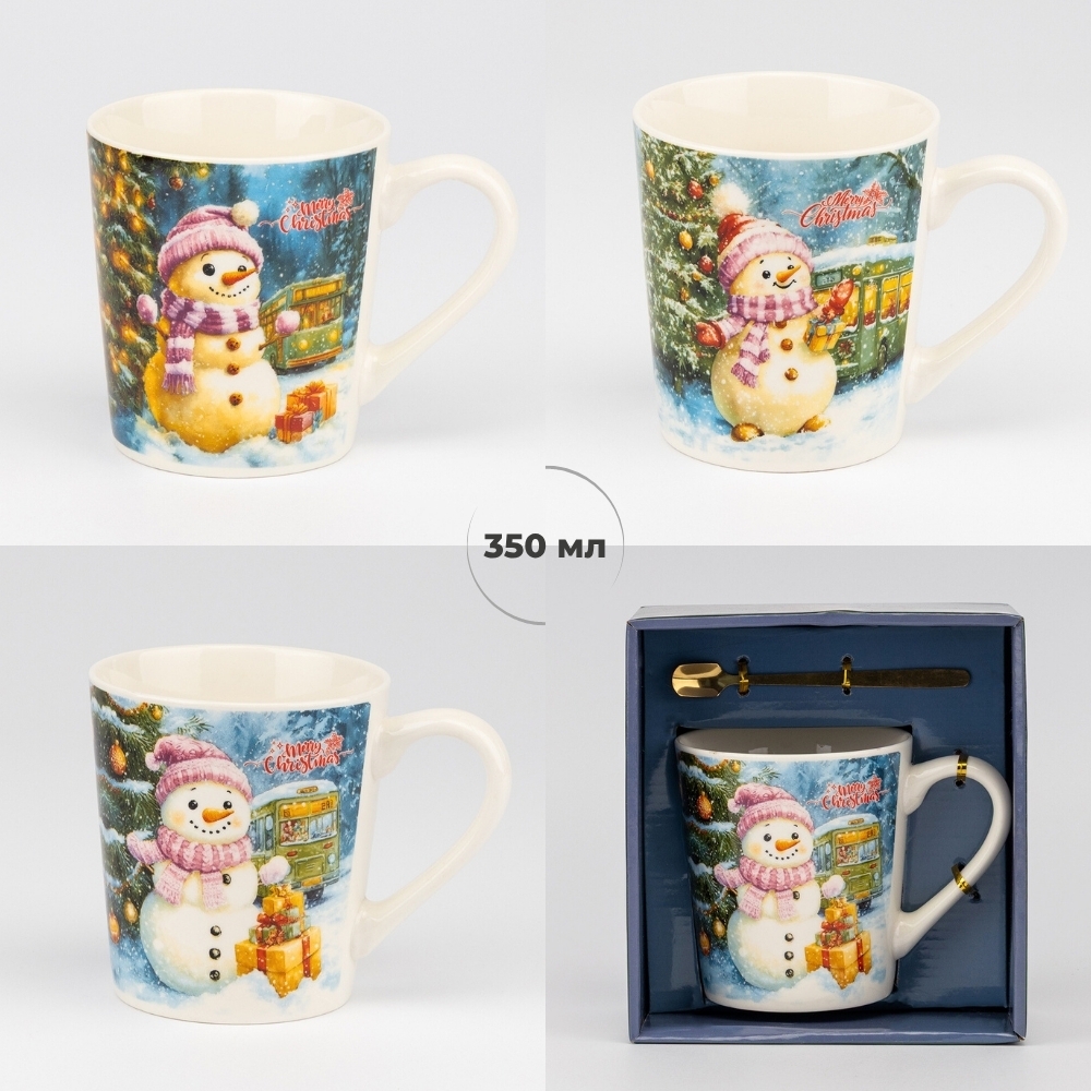 Кружка з ложечкою "Сніговичок", 350 мл * Рандомний вибір дизайну (9250-035)