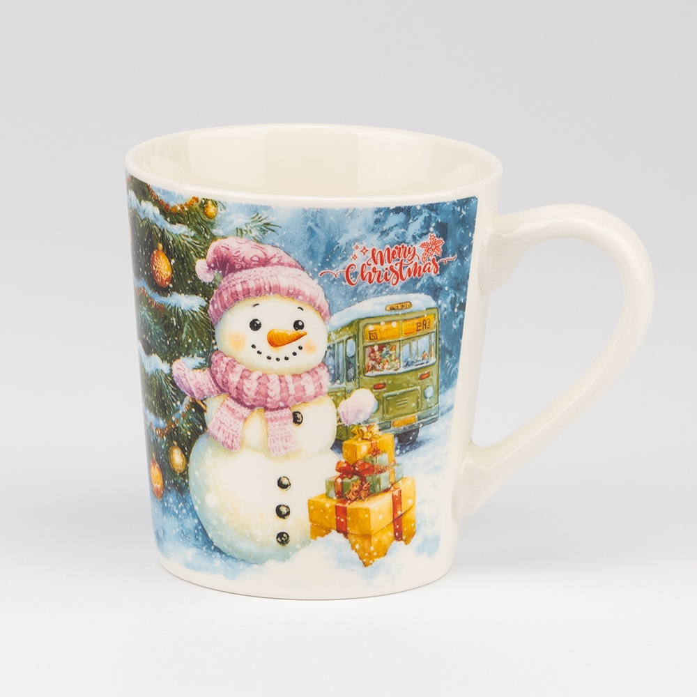 Об'єм - 350 мл. Керамічна новорічна чашка - це ідеальний атмосферний посуд для зимових вечорів. Виготовлена з високоякісної кераміки, ця чашка прикрашена яскравими тематичними зображеннями. Зручна ручка та місткий об'єм роблять її ідеальною для гарячого шоколаду, чаю або кави. Чашка додає різдвяного настрою і затишку, роблячи кожне чаювання особливим.