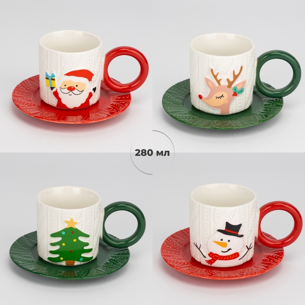 Кружка з блюдцем "Святкова радість", 280 мл * Рандомний вибір дизайну (9252-015)