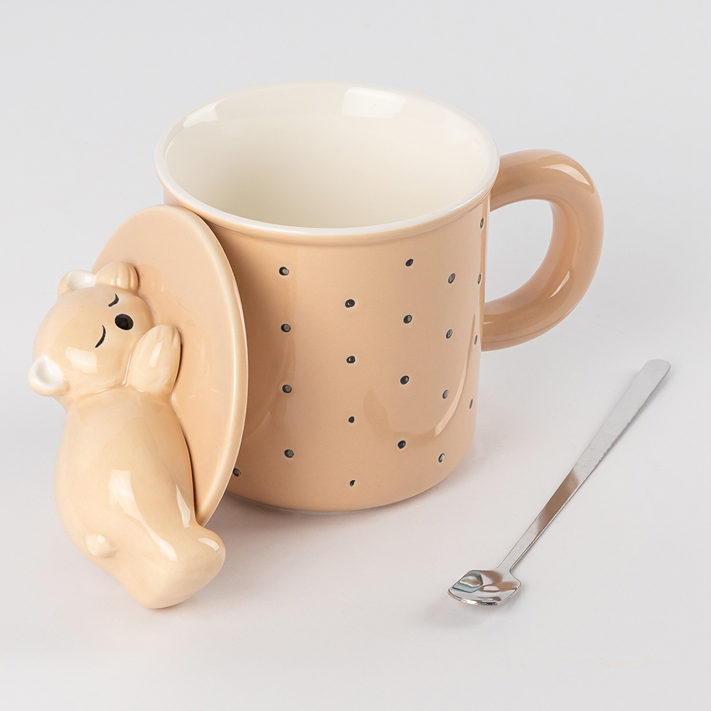 Об'єм - 400 мл, висота з кришкою - 13 см, висота без кришки - 9,5 см, діаметр - 9 см, довжина з ручкою - 13 см, ложка - 15 см. Керамічна кружка з оригінальним дизайном - відмінний варіант подарунка на будь-яке свято! Рідні та друзі будуть в захваті від такої чарівної кружки! Кружка виготовлена з високоякісної кераміки, що робить її відносно стійкою до пошкоджень та подряпин. Об'єм кружок робить їх ідеальними для кави, чаю, гарячого шоколаду та інших улюблених напоїв. Це чудовий вибір для роздрібних торговців, кафе, ресторанів та покупців, які цінують якість і стиль. Приєднуйтеся до нашої спільноти задоволених клієнтів і насолоджуйтеся кожним ковтком з наших керамічних кружок!