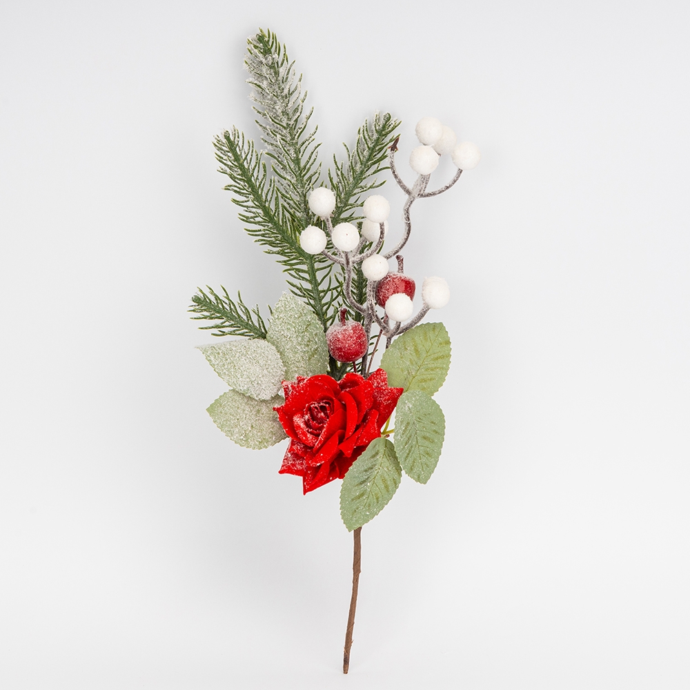 Декоративна гілка "Зимова троянда", 34 см (9257-003)