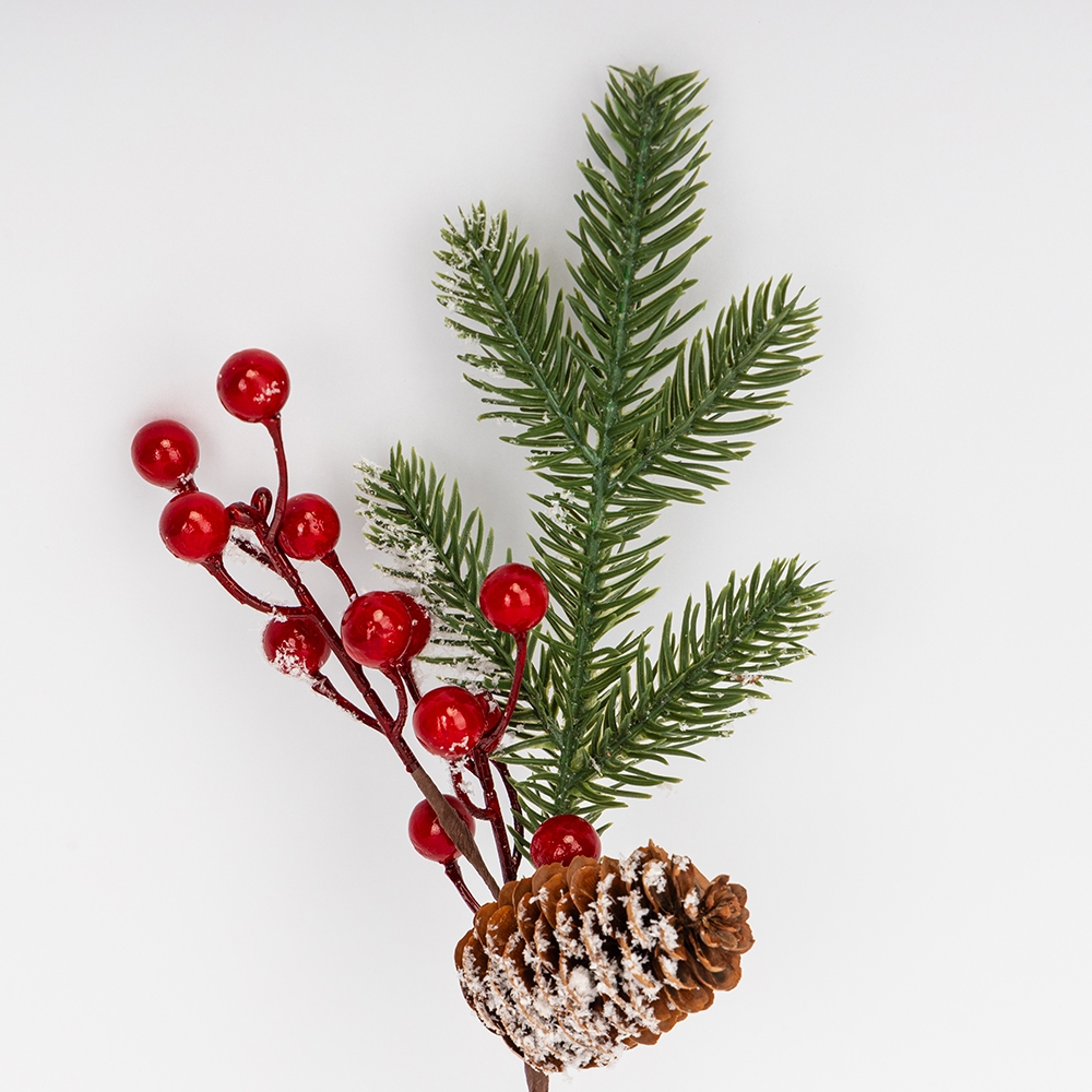 Декоративна гілка "Засніжена шишка", 33 см (9257-019)