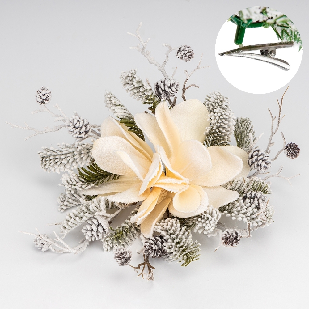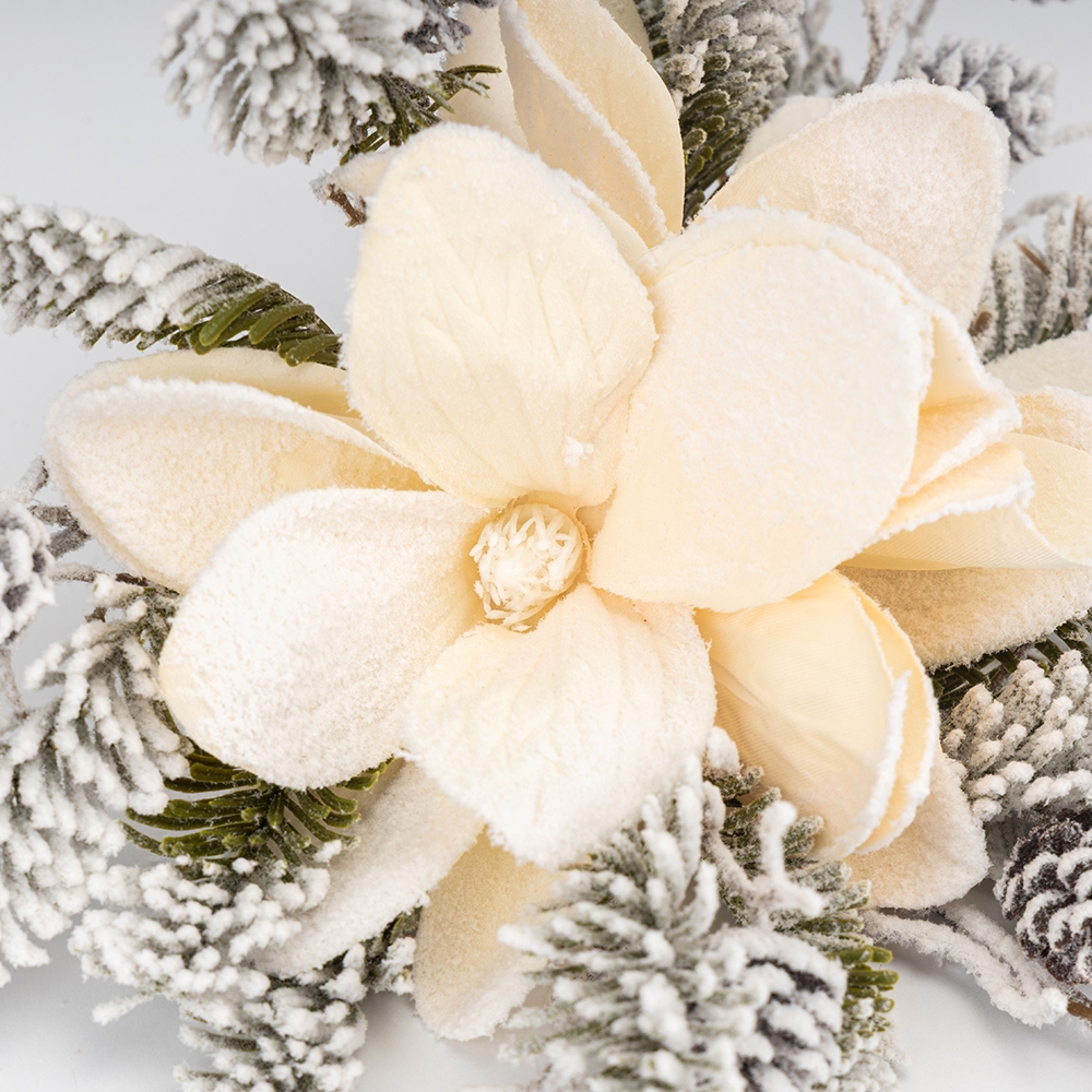 Новорічна прикраса-кліпса "Засніжена магнолія", кремова, 30 см (9258-004)