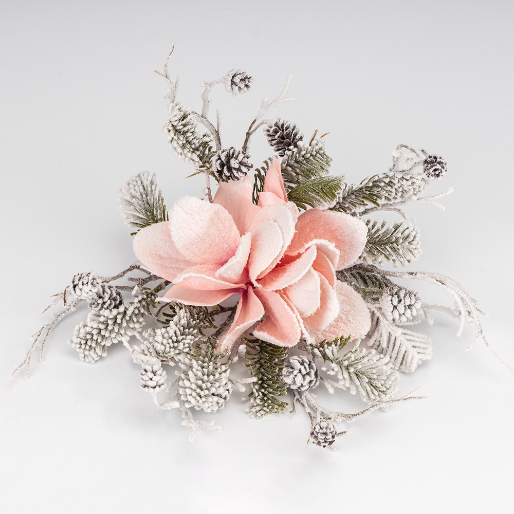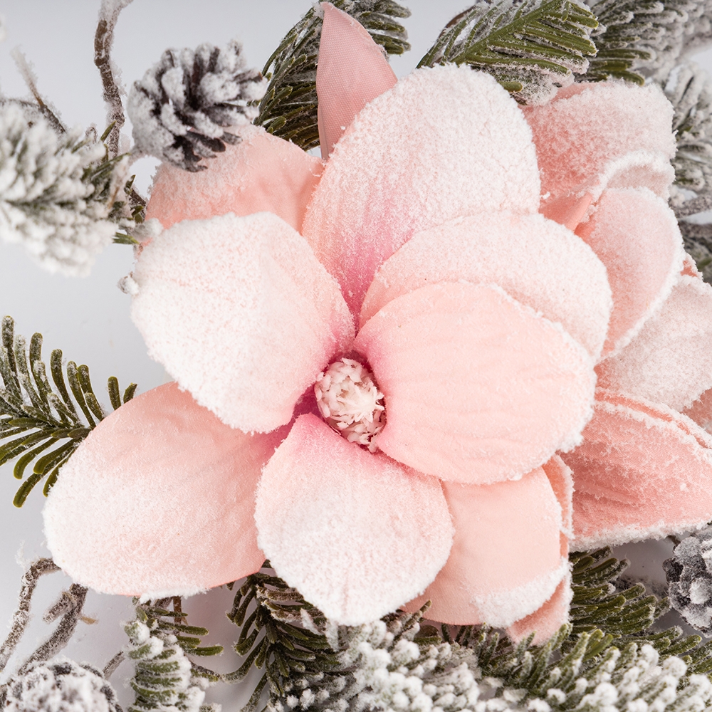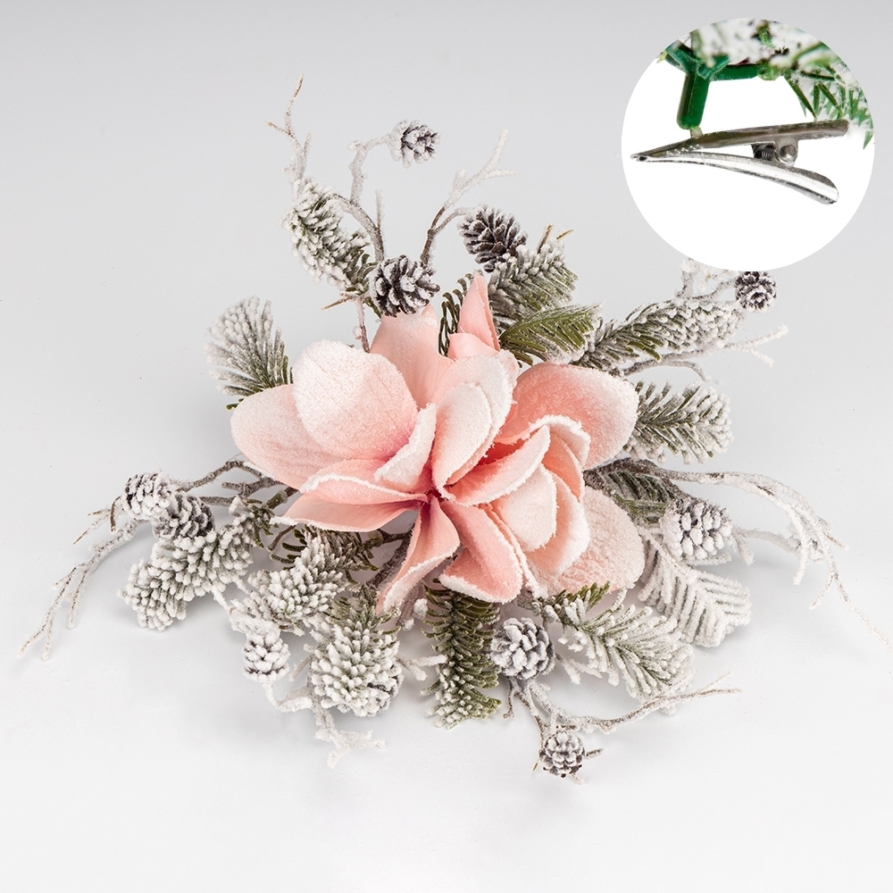 Новорічна прикраса-кліпса "Засніжена магнолія", рожева, 30 см (9258-007)