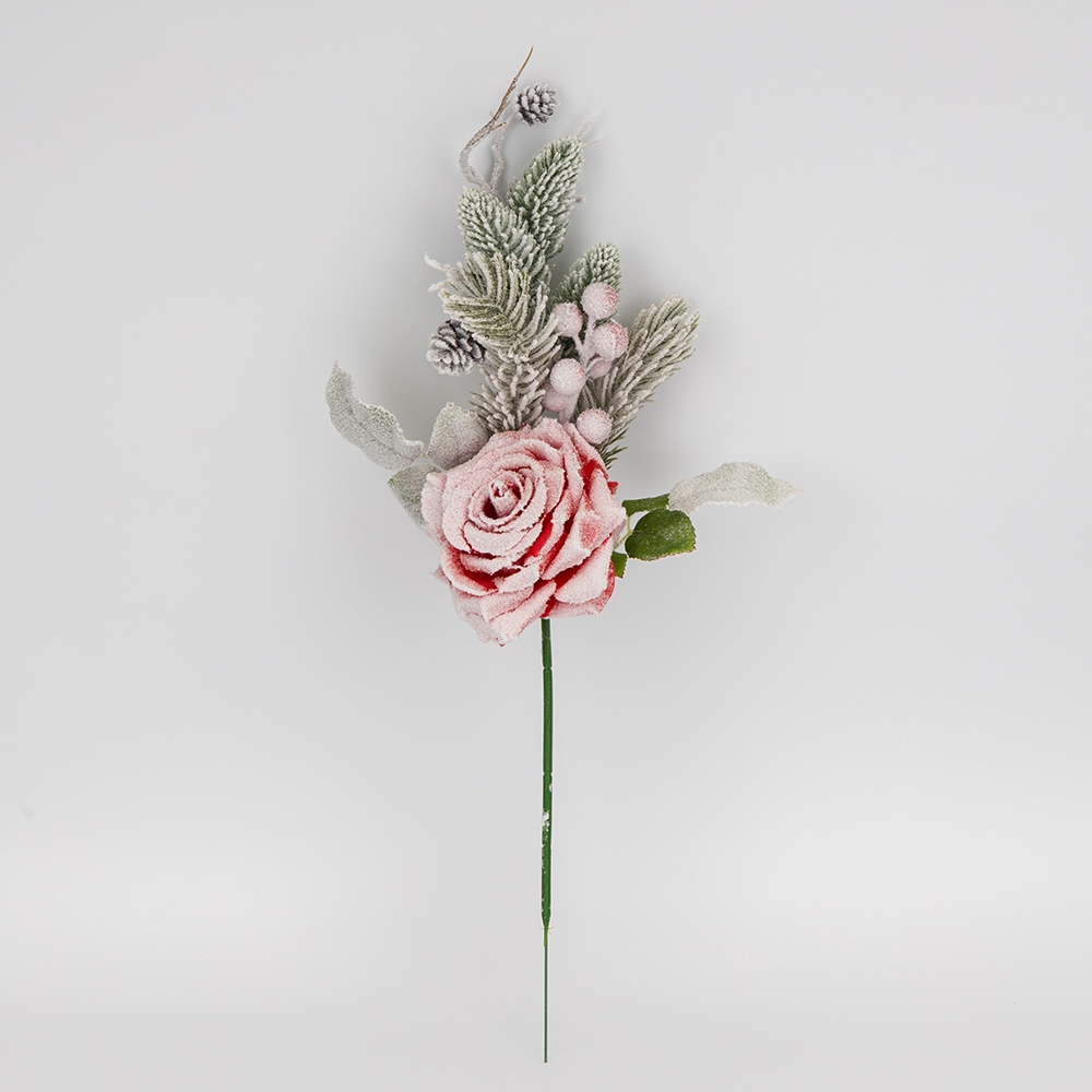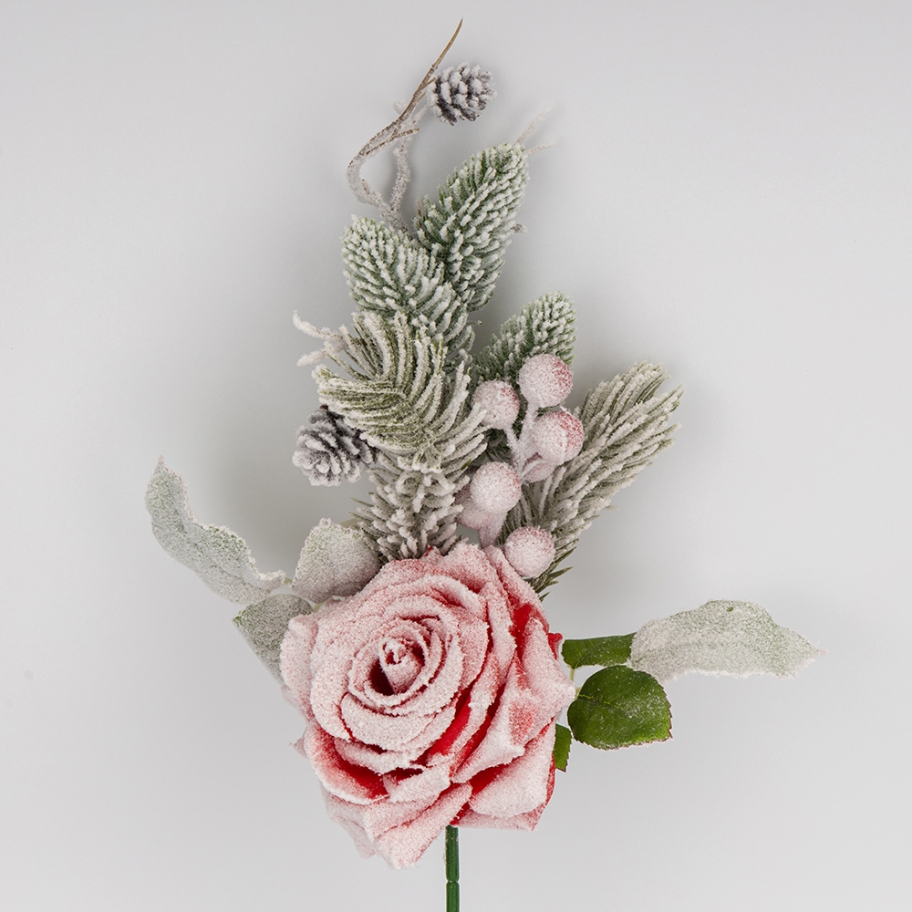 Декоративна гілка "Засніжена троянда", червона, 47 см (9258-008)