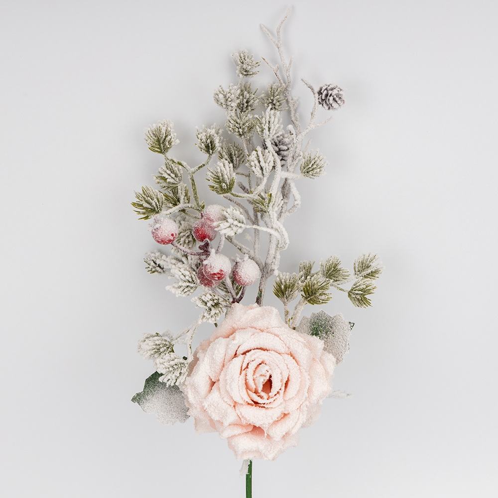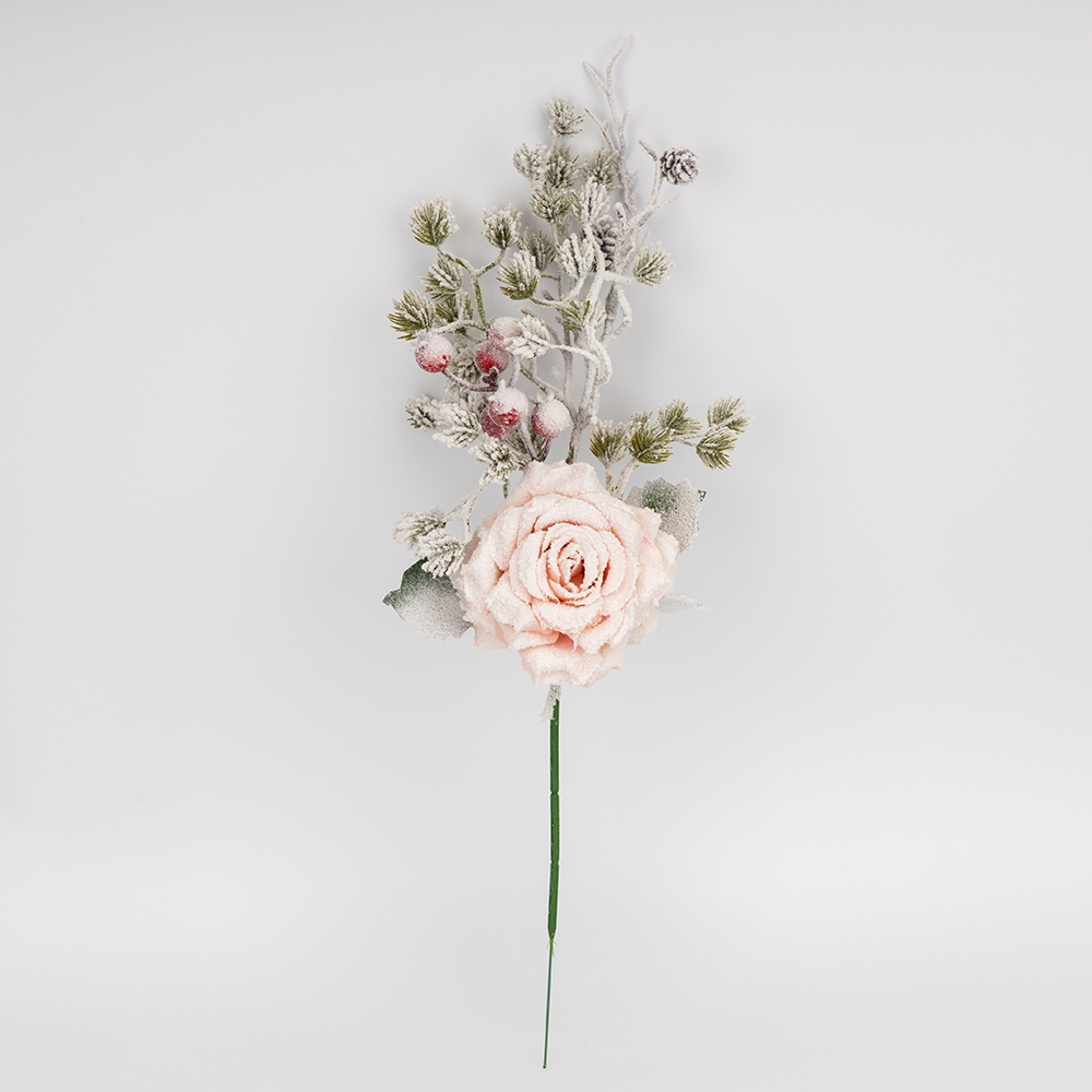 Декоративна гілка "Засніжена троянда", рожева, 46 см (9258-019)