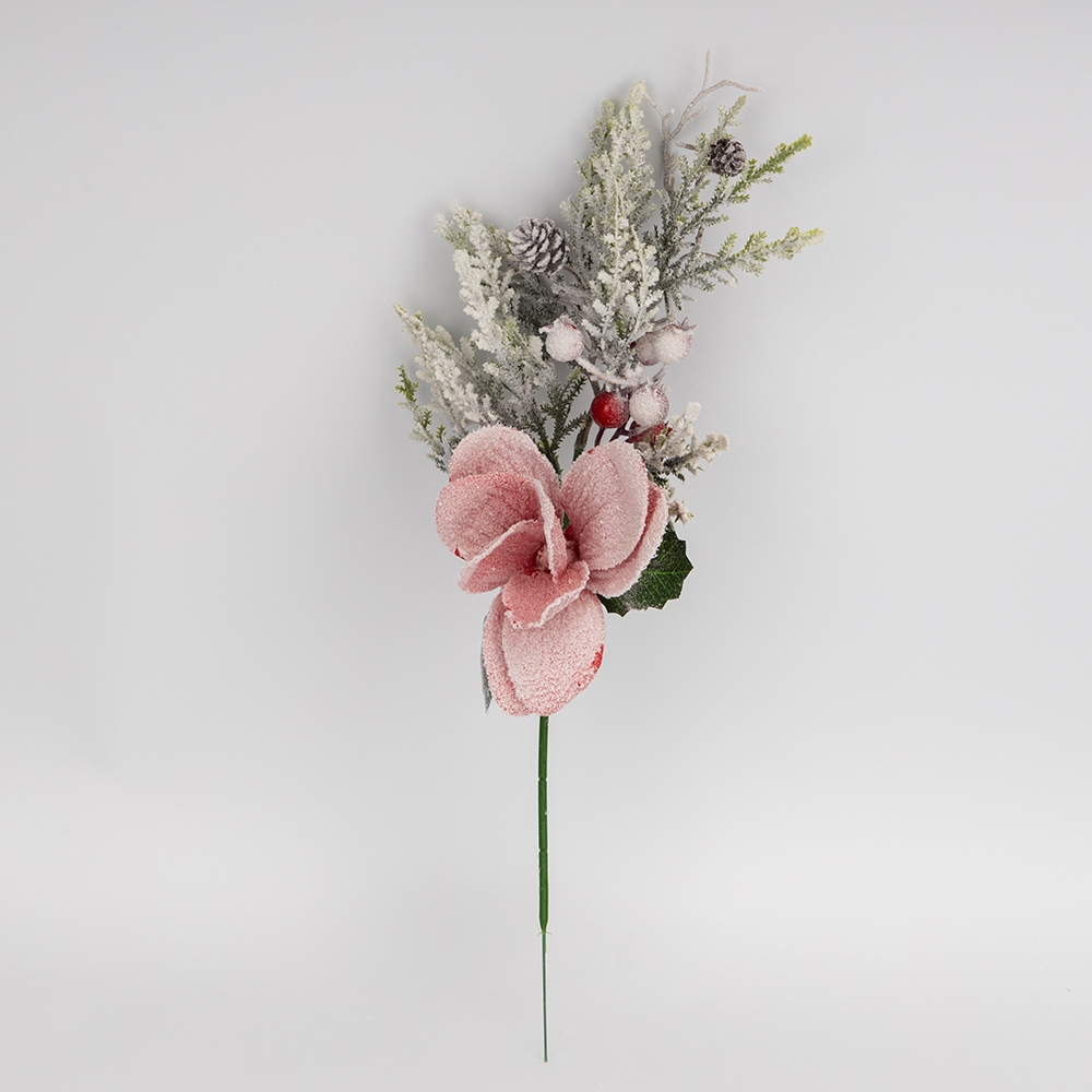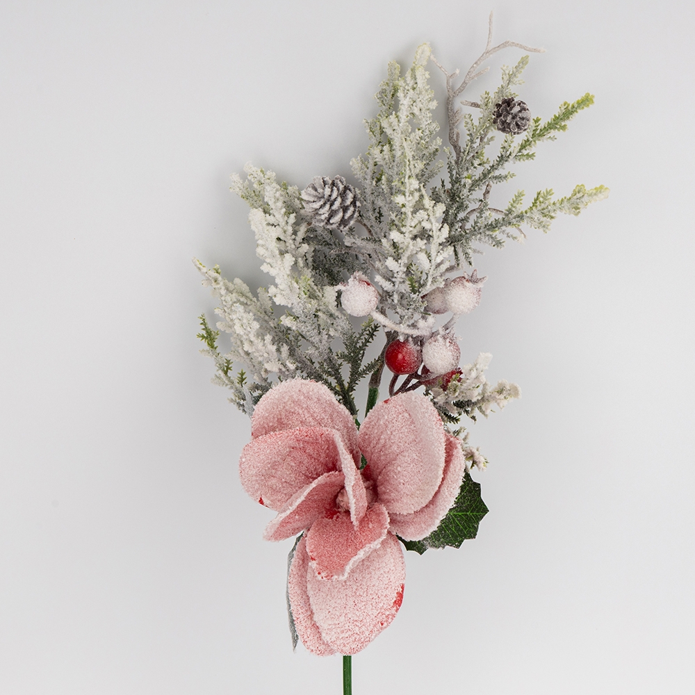 Декоративна гілка "Засніжена магнолія", червона, 47 см (9258-021)
